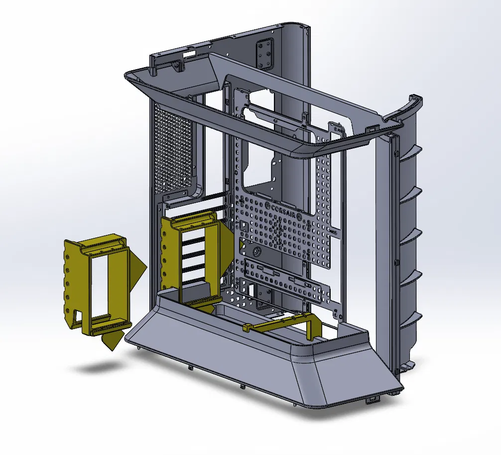 Các bộ phận có sẵn phần đỡ, anh em có thể bẻ đi sau khi in với các cái lẫy nhỏ. Có kèm theo cả cái kẹp phía sau để giữ cho khung lắp dọc chắc chắn vào các khe PCIe. Các lỗ đều được thiết kế để sử dụng với ốc xoay nhanh của CORSAIR (thùng máy của anh em nên có sẵn vài cái).