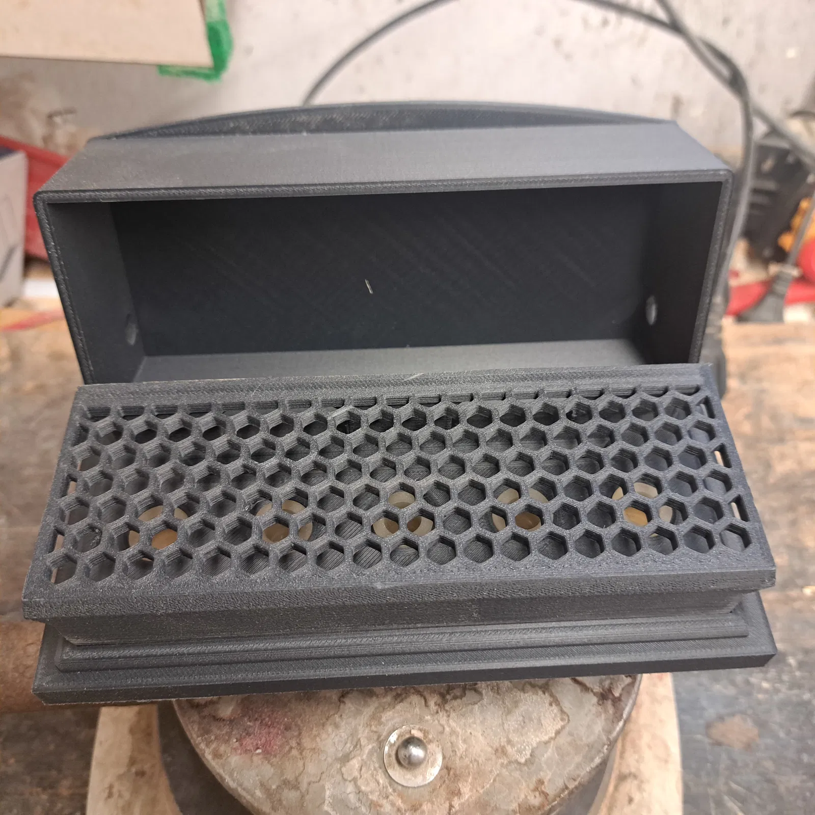 In ra từ Prusament PC Blend - carbon fiber. 5 lớp vỏ và 20% mật độ ruột.