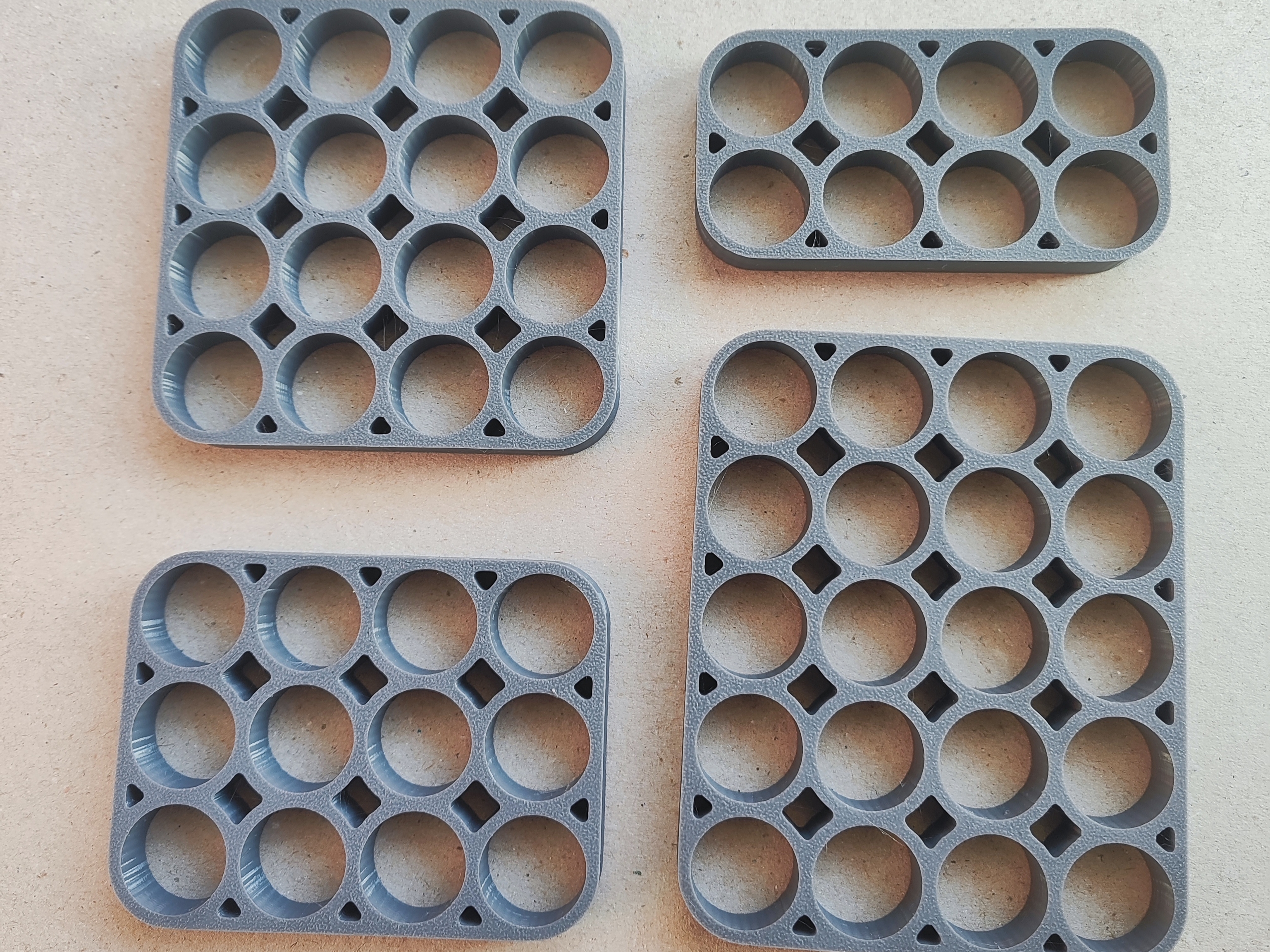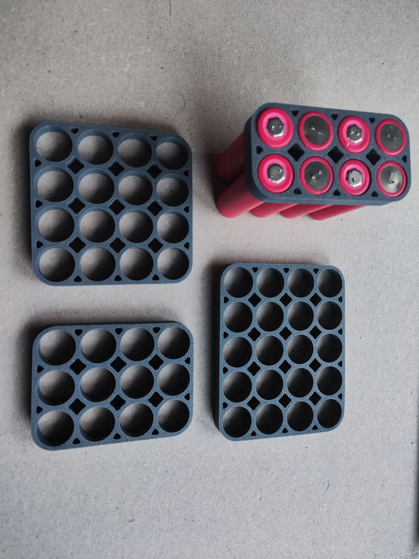 Bộ giữ pin 18650 Quad Row cho phép bạn xây dựng các khối pin lớn từ 8 đến 24 cell, lý tưởng cho Powerwall hoặc xe điện. Có các kênh đi dây BMS tích hợp, đảm bảo lắp ráp gọn gàng và ổn định. Chất liệu PETG, ABS, ASA được khuyến nghị.