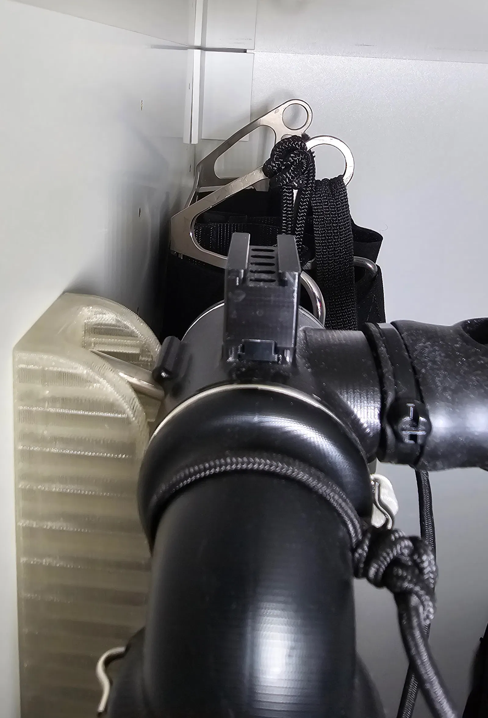 Lưu ý / An toàn Đây là phụ kiện cho thiết bị (phơi khô/cất giữ), không phải thiết bị hỗ trợ sự sống nha. Kiểm tra kỹ bản in xem có bị nứt không, nhất là nếu bạn xài ở môi trường lạnh hoặc với đồ lặn còn ướt nặng.