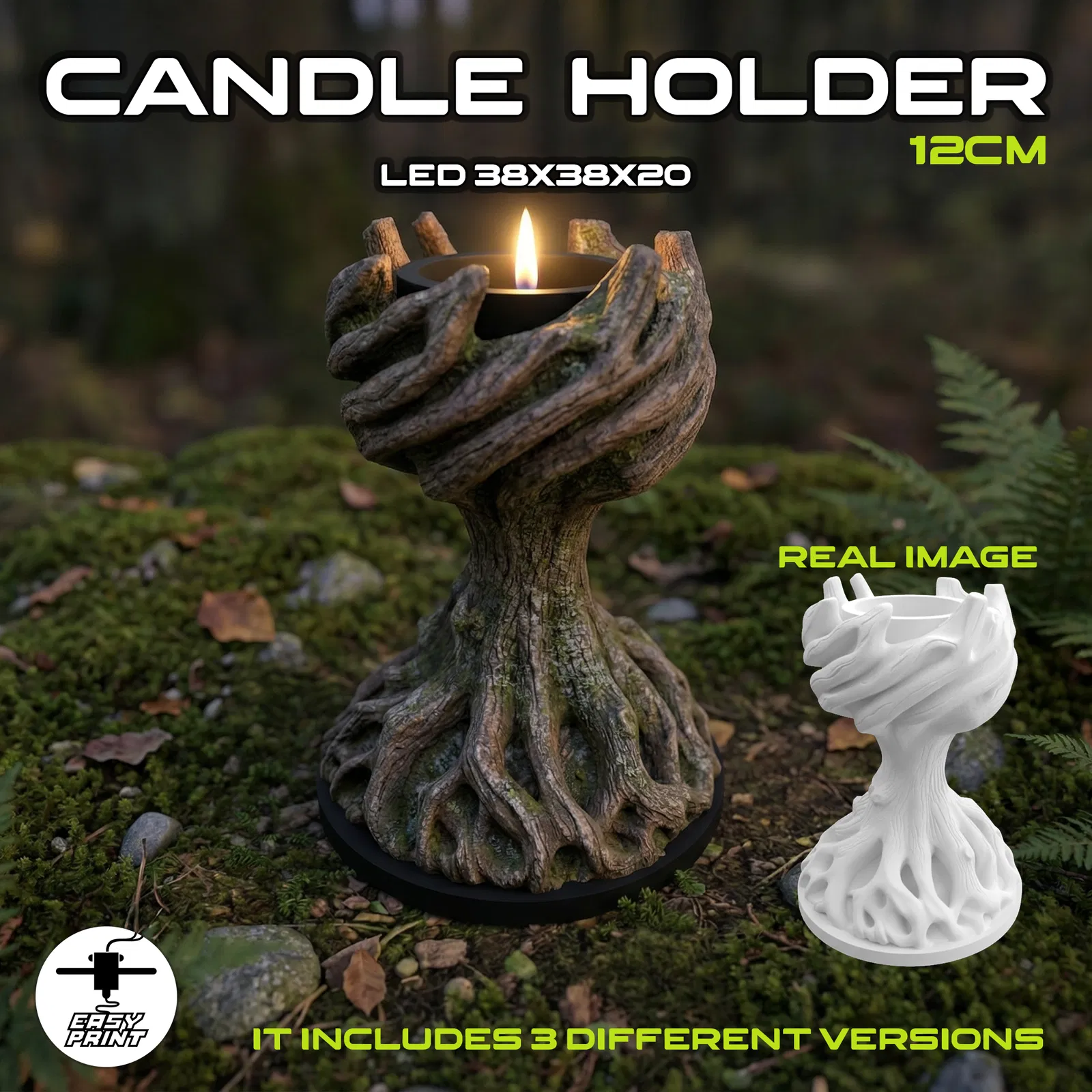 Chân nến hình cây LED, tuyệt vời để trang trí nhà cửa với một chút thiên nhiên. In 3D dễ dàng, dùng sợi giả gỗ cho hiệu ứng đẹp.