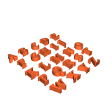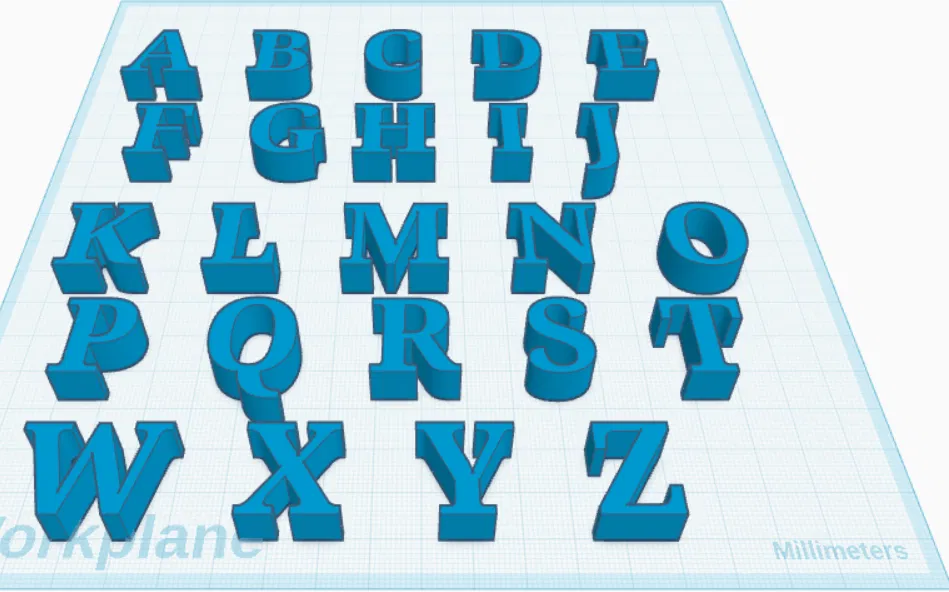 Bộ sưu tập các chữ cái abcdefghijklmnopqrstuvwxyz, cho phép bạn tùy chỉnh và in ấn dễ dàng bằng phần mềm TinkerCAD.