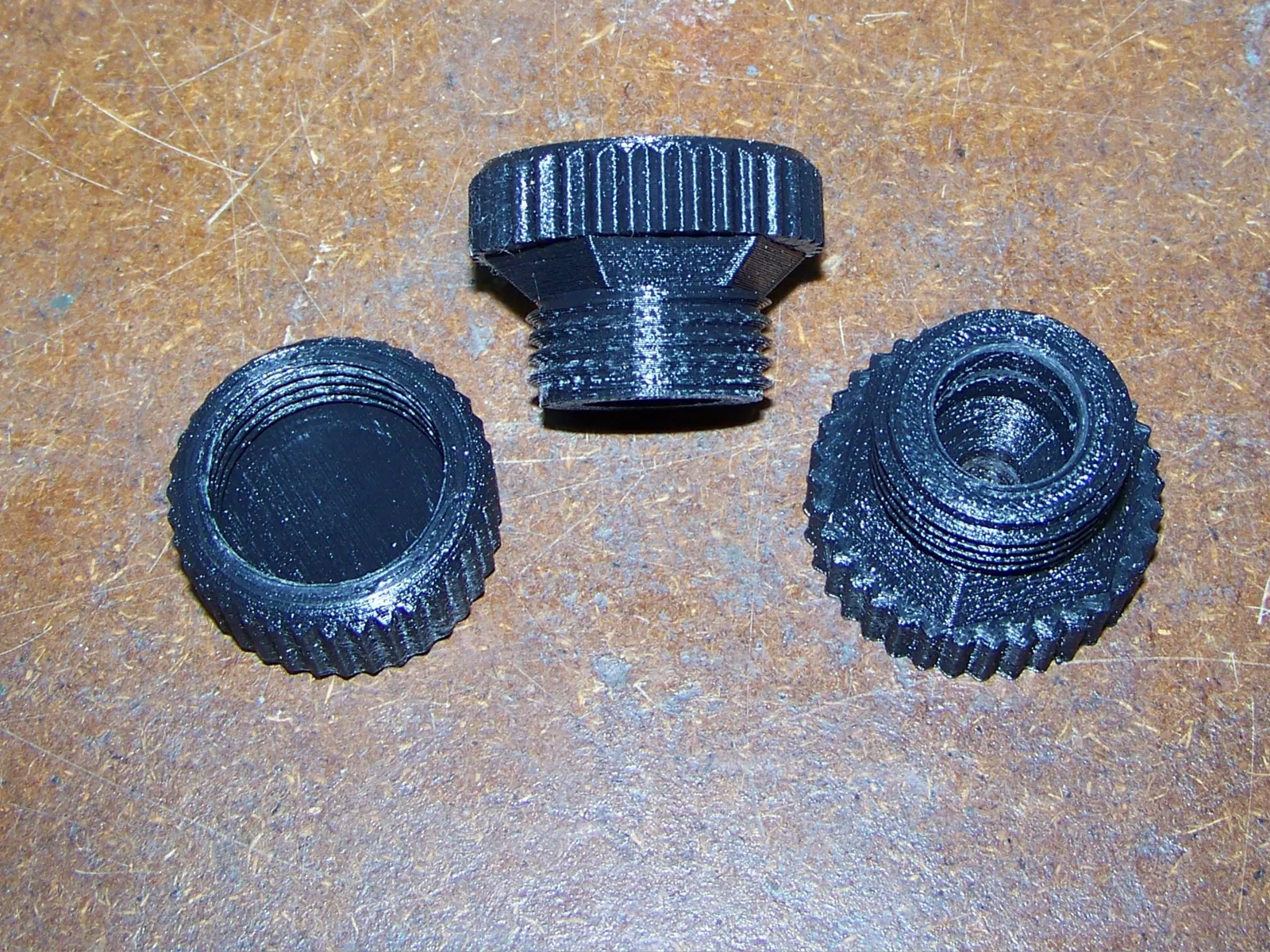 Tôi đã dùng PLA đen và xám thông thường với lớp in 0.2, 4 lớp tường để tăng độ bền ren, 30% độ đặc ruột, không cần hỗ trợ. Tôi đã thiết kế một nút cho lỗ nam châm để in cùng với dải treo, có thể dễ dàng tháo ra sau khi in. Lỗ cho đầu phun khí là 8mm.