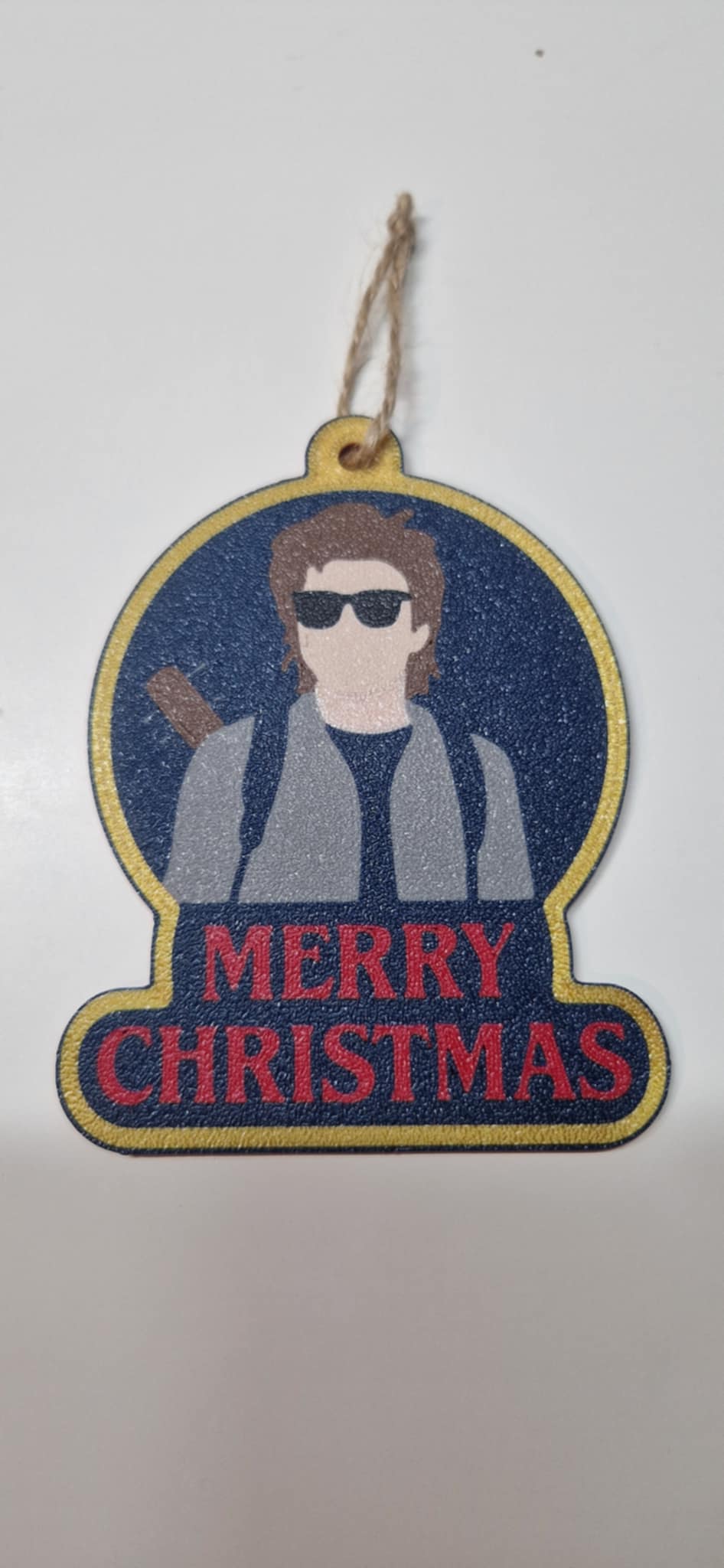 Đồ trang trí Giáng sinh Steve - Stranger Things, lấy cảm hứng từ biểu tượng thập niên 80 với kiểu tóc và kính râm đặc trưng. Tích hợp thông điệp "Chúc mừng Giáng sinh""", tạo thêm nét cá tính độc đáo cho cây thông Noel của bạn. In một mảnh với vòng treo tích hợp, không cần lắp ráp.