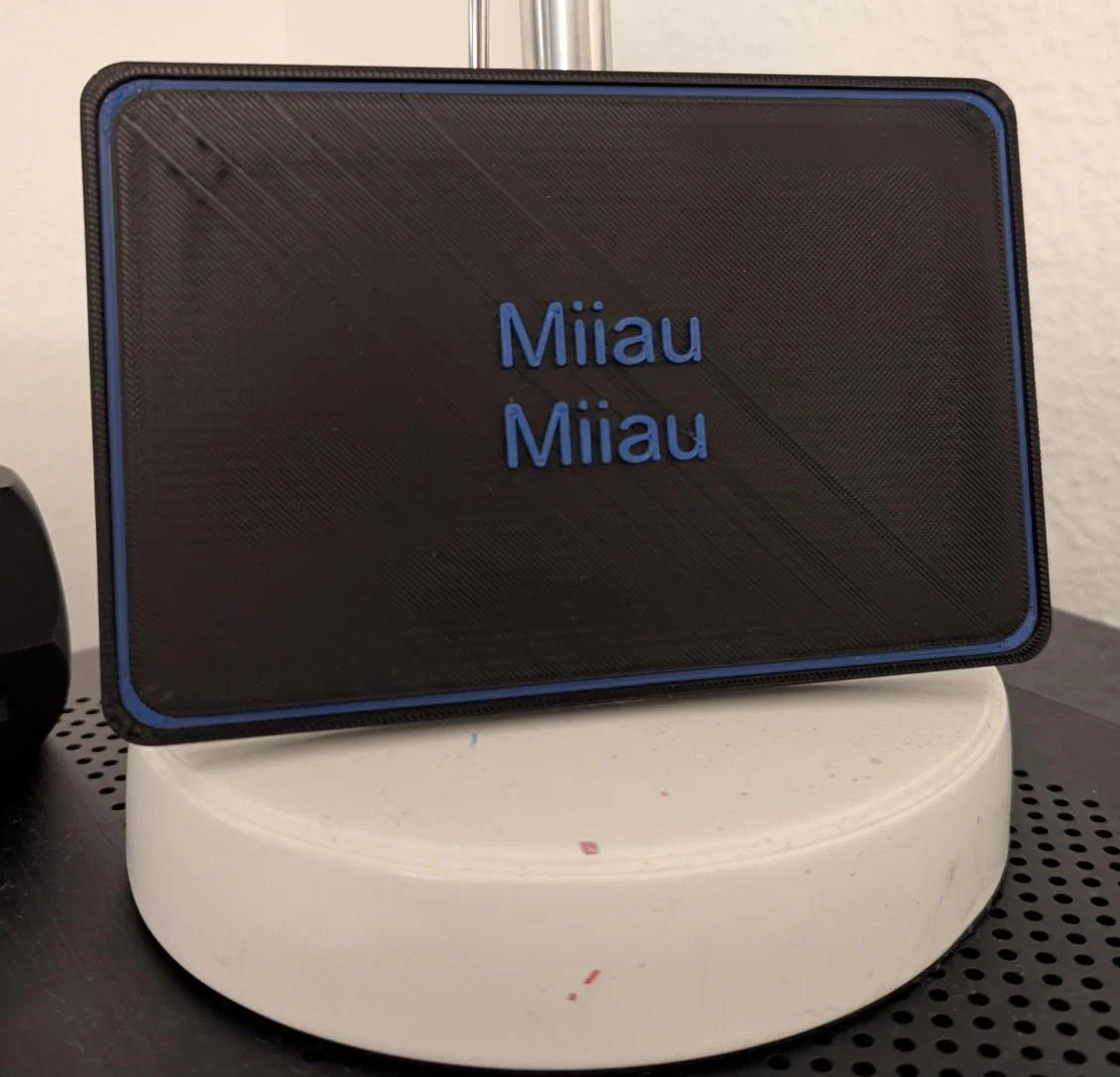 Một tấm biển nhỏ xinh với hình ảnh "Miiau Miiau", thích hợp để trang trí, thể hiện cá tính. Tải về miễn phí file STL để in 3D.