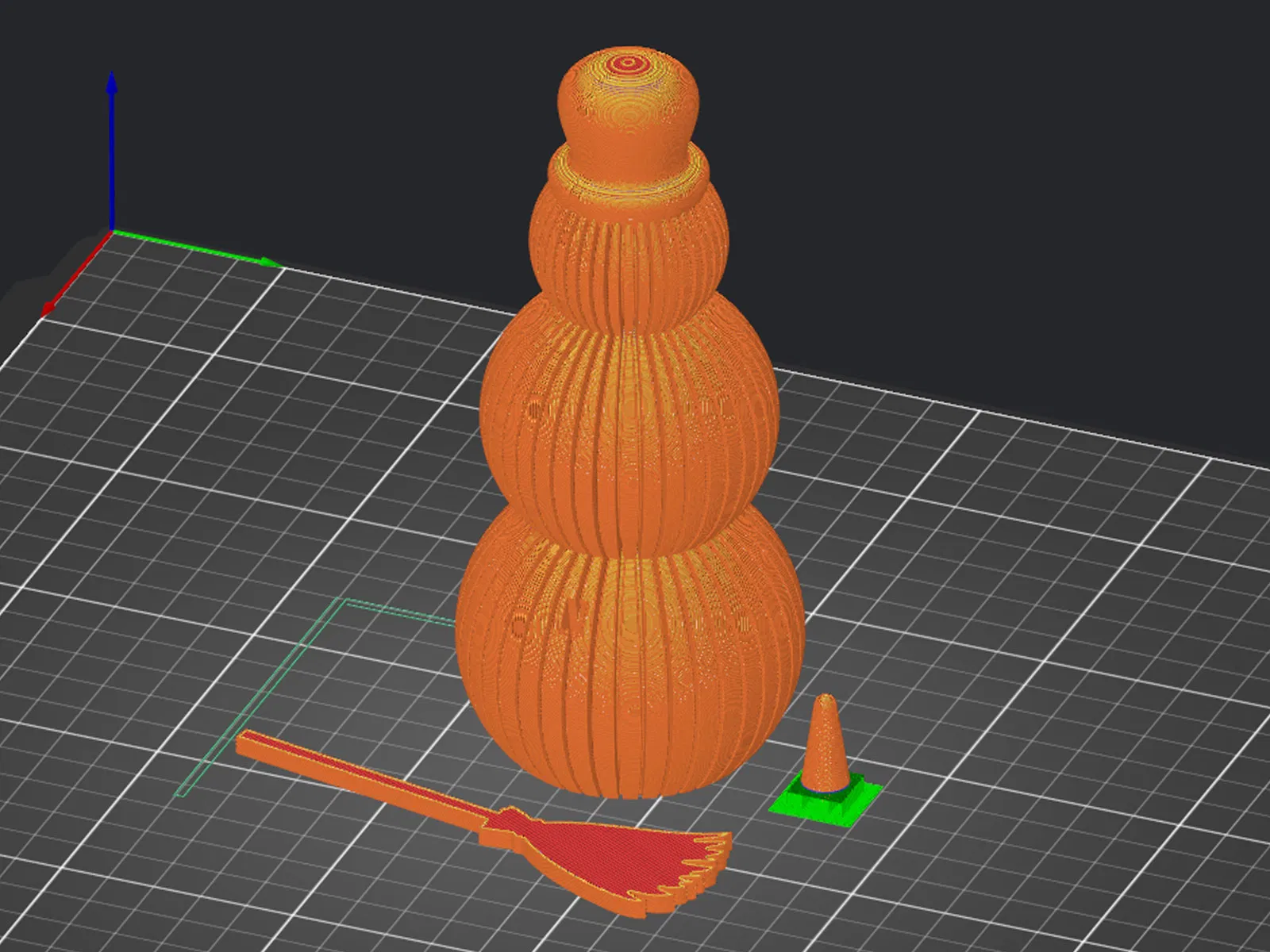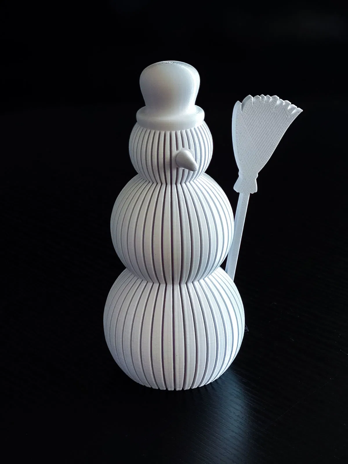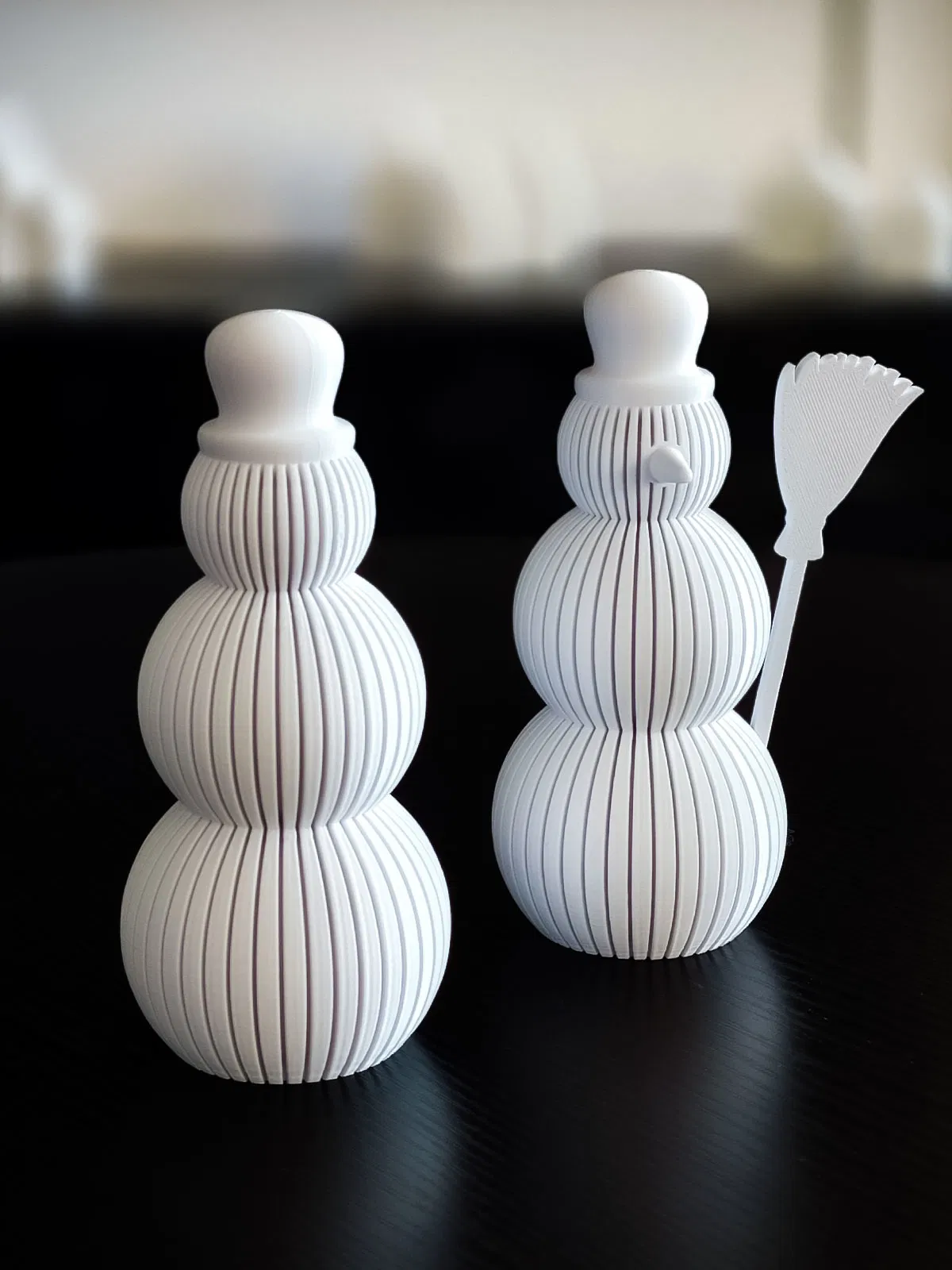 Mấy em người tuyết trang trí có thiết kế sọc dọc độc đáo này rất hợp để làm đồ trang trí mùa đông hoặc Giáng Sinh. Có thể in dễ dàng bằng PLA/PETG, có thêm mũi và chổi tùy chọn. Cài đặt in đơn giản, phù hợp mọi trình độ.