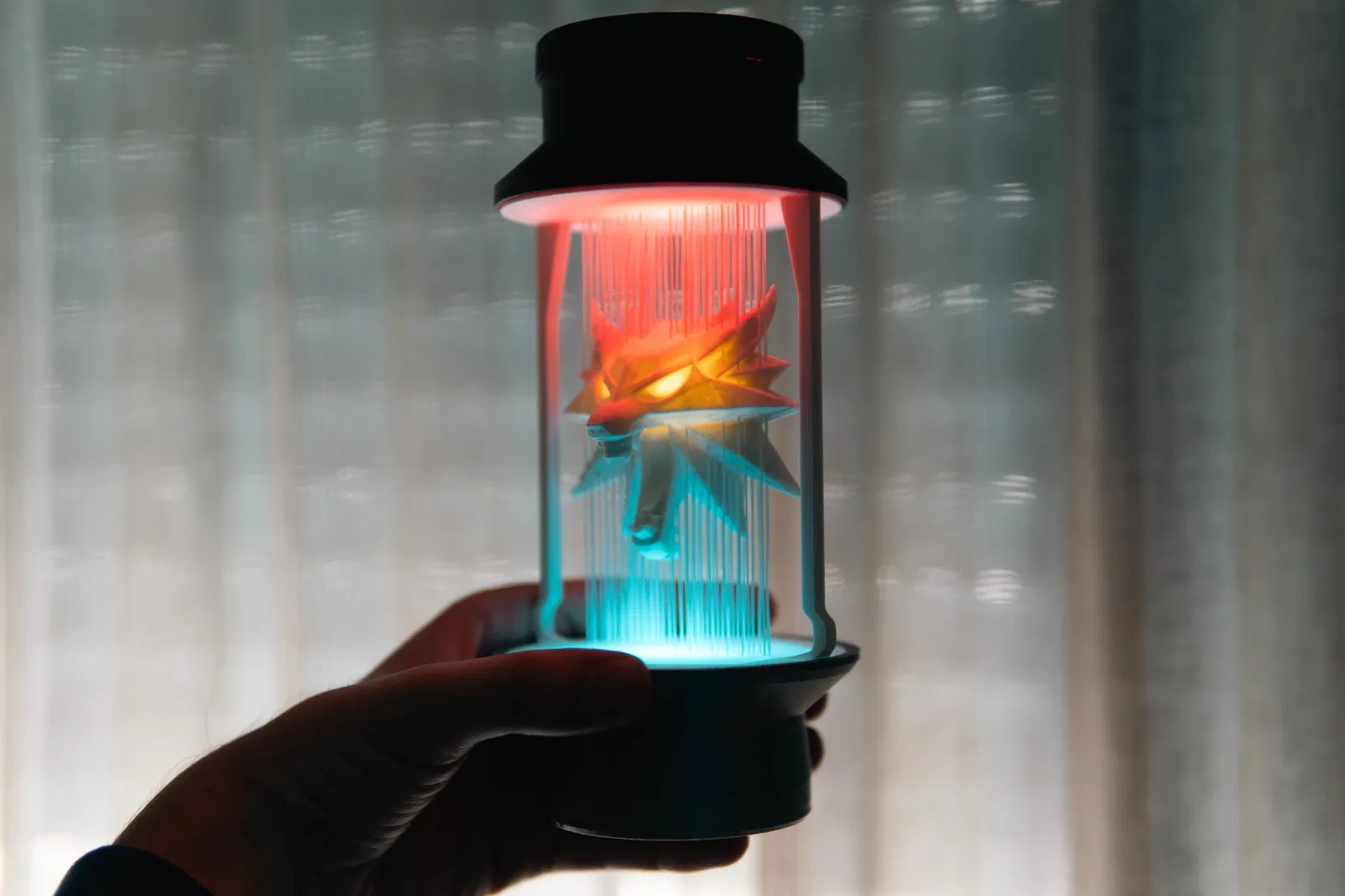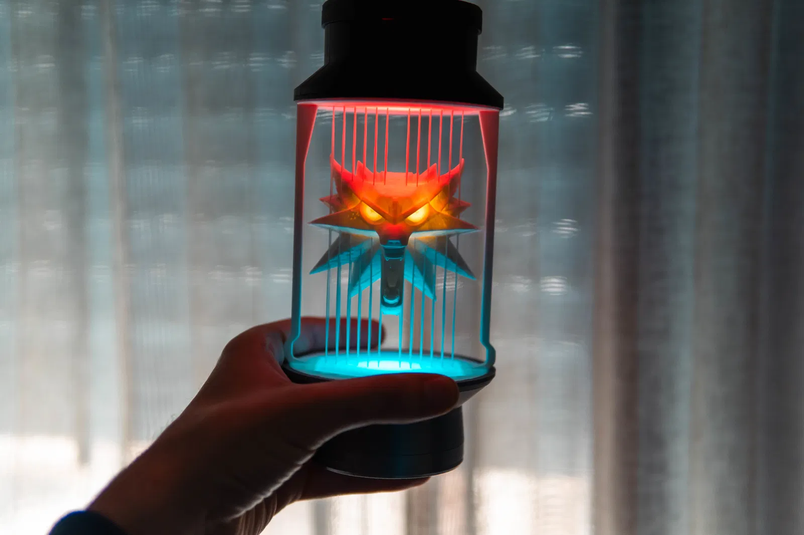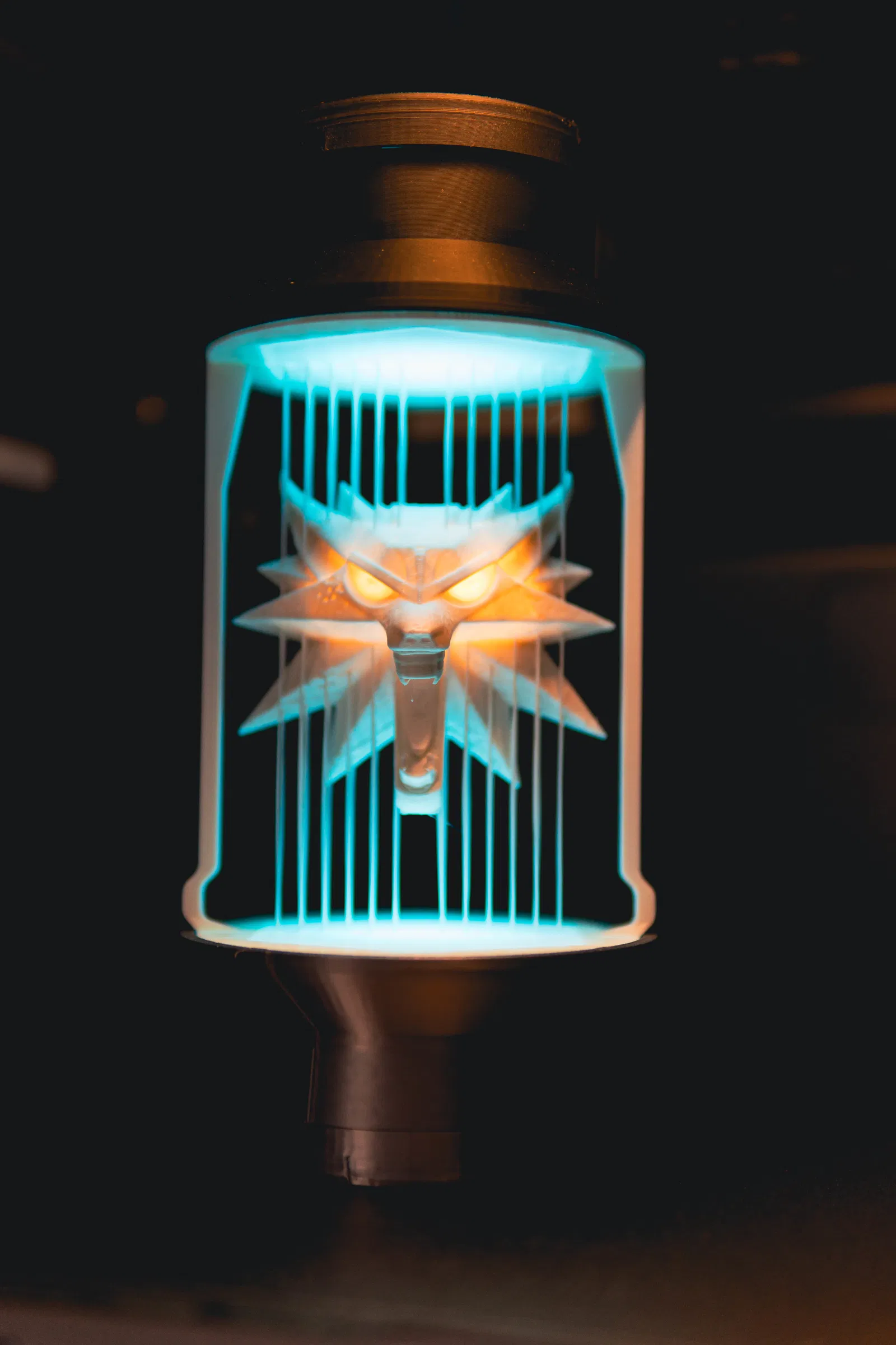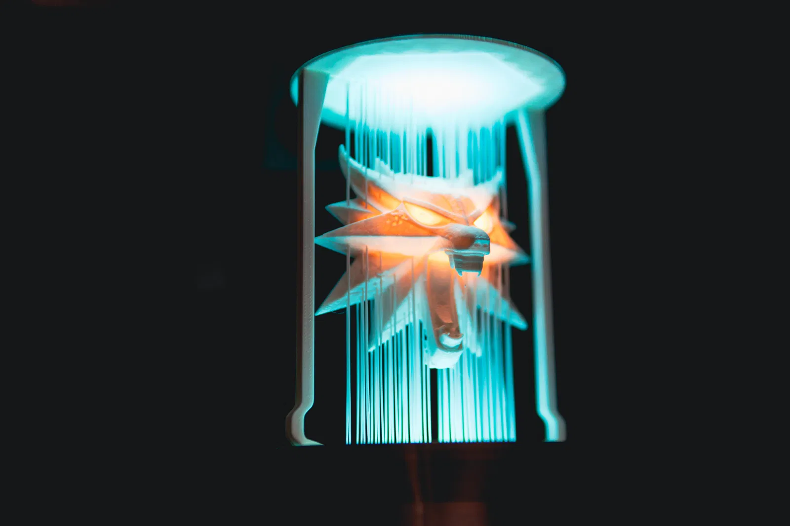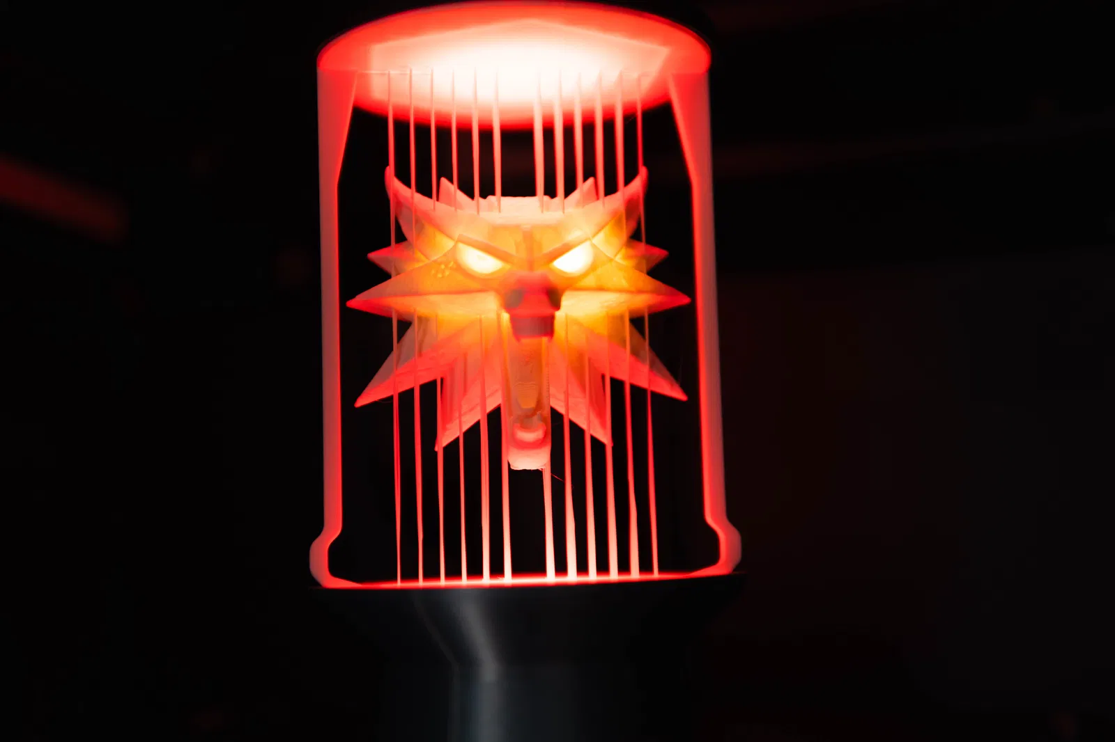 Chiếc mề đay sói huyền thoại từ Witcher 3 nay thành đèn trang trí độc đáo. Dây đèn RGBW tích hợp, mắt sói có thể chiếu sáng riêng biệt với LED hoặc công tắc nam châm. Hướng dẫn in chi tiết, lưu ý để nguội trước khi lấy bản in để tránh làm hỏng dây.