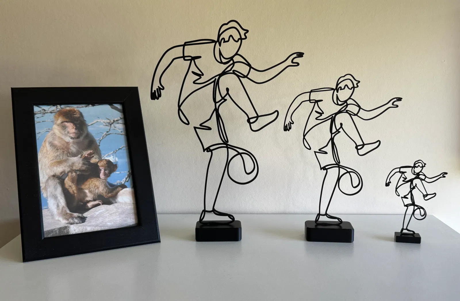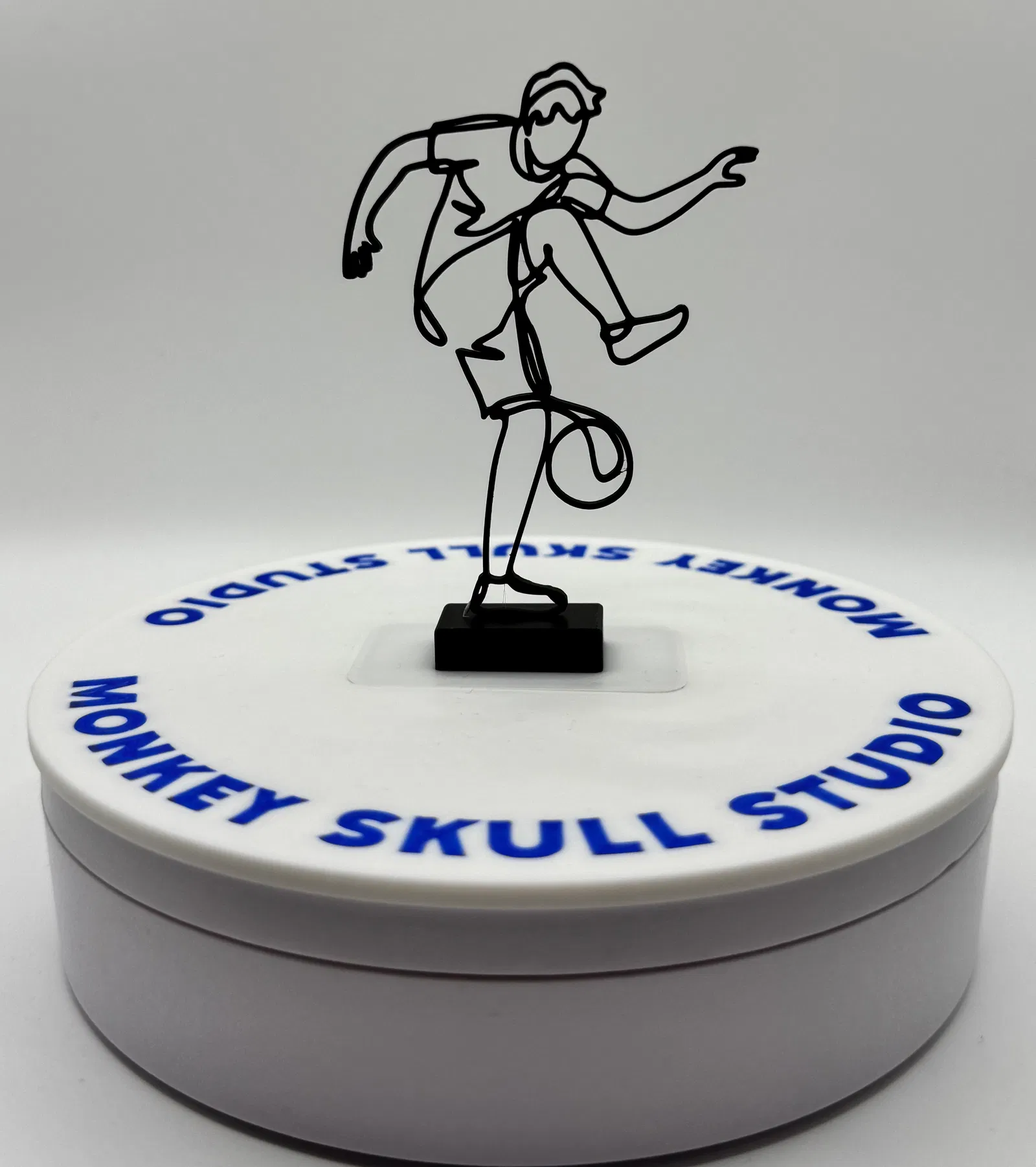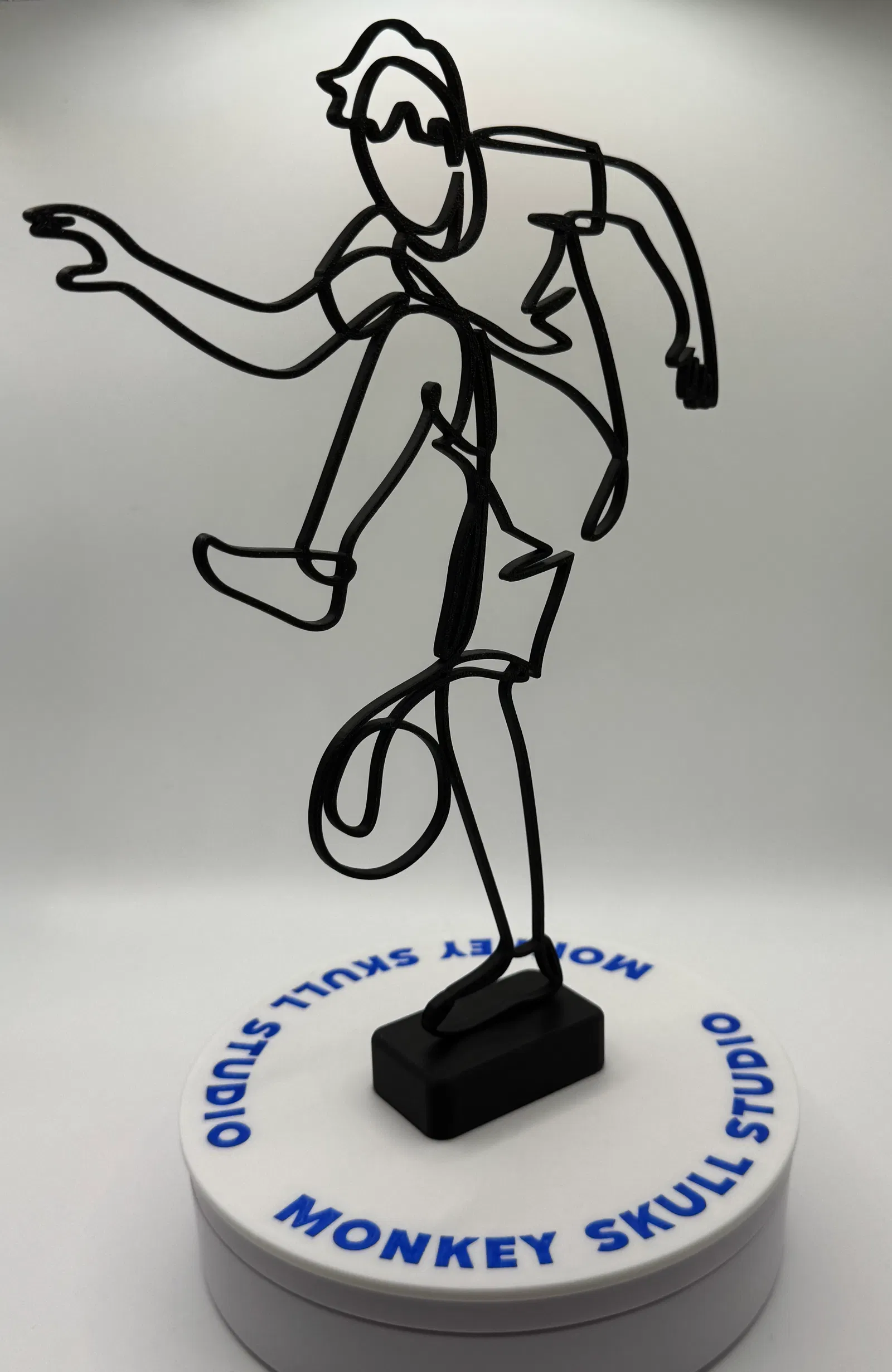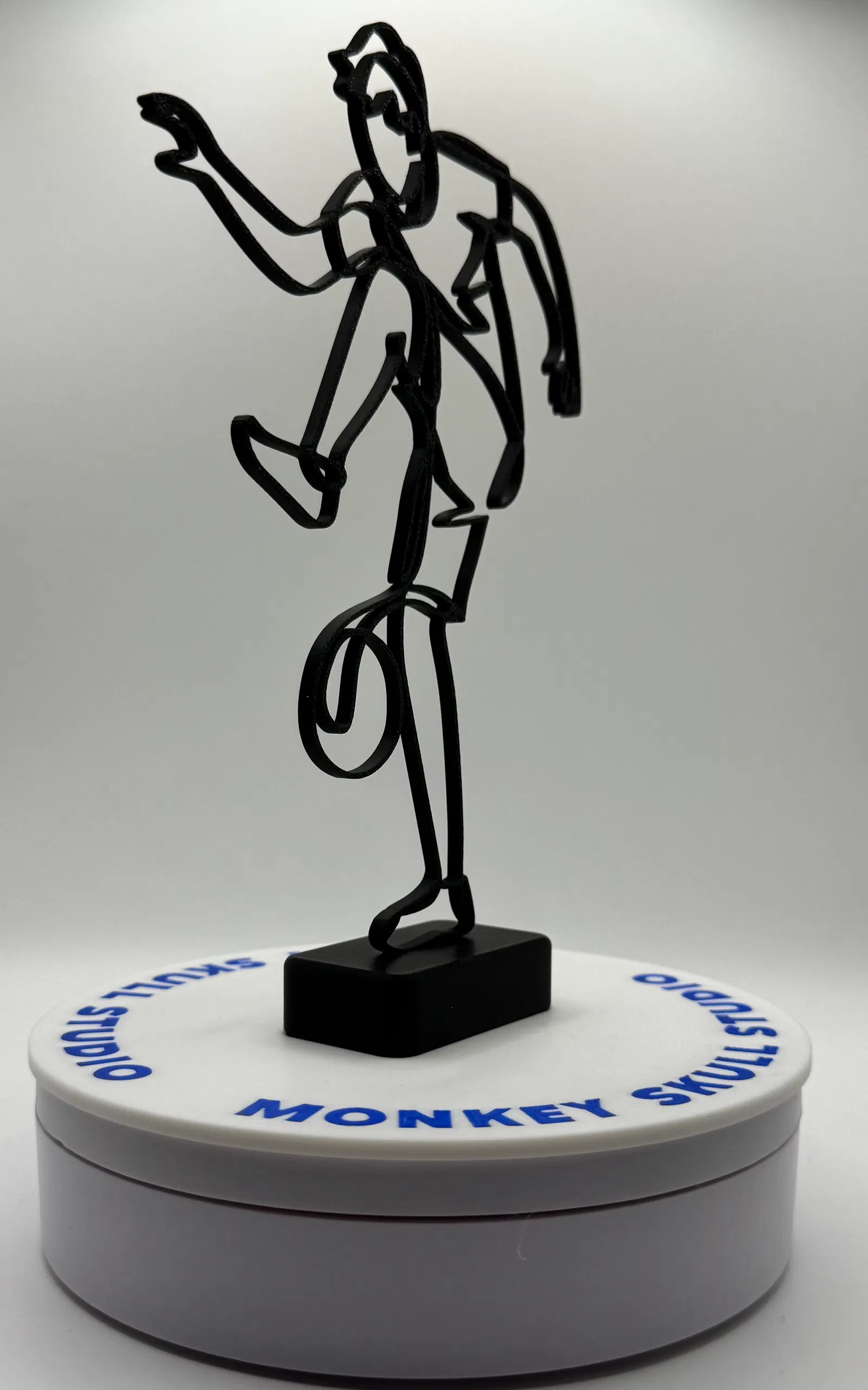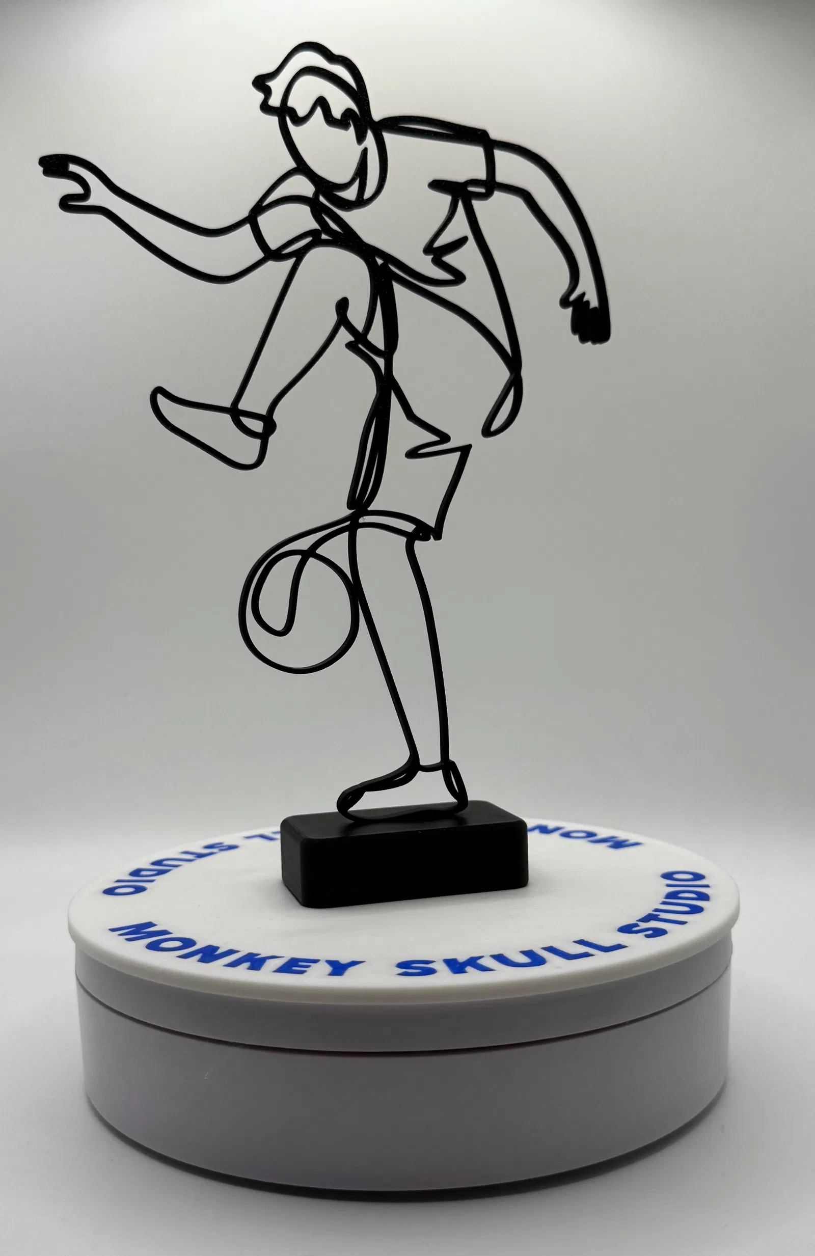 Mô hình điêu khắc nghệ thuật đường nét hiện đại, ghi lại chuyển động năng động của một cầu thủ bóng đá đang thi đấu. Được tạo ra như một đường viền sạch sẽ, uyển chuyển, tác phẩm này nhấn mạnh sự chuyển động và cân bằng, đồng thời giữ tính thẩm mỹ tối giản, lý tưởng cho bàn làm việc, kệ và nội thất đương đại.