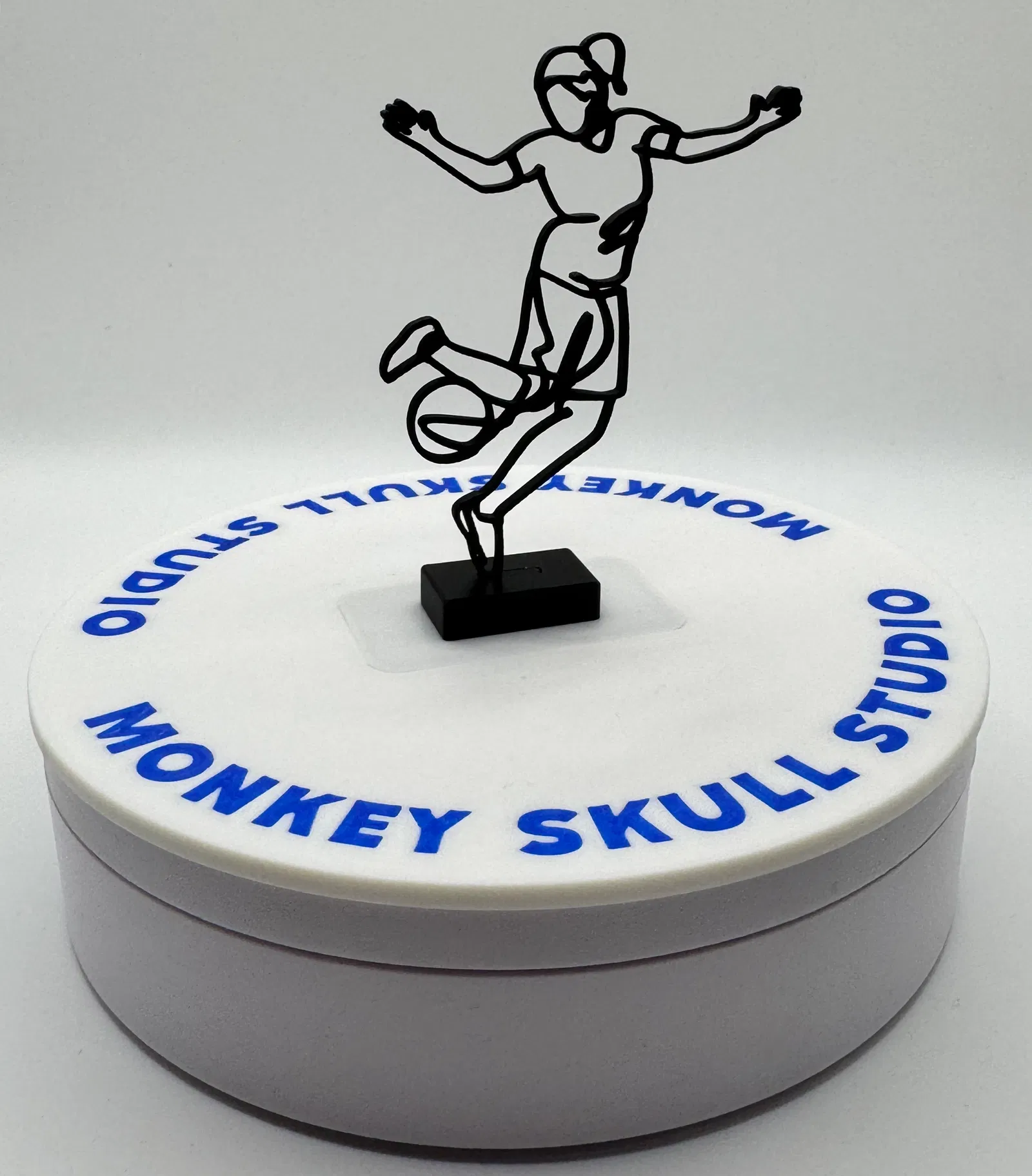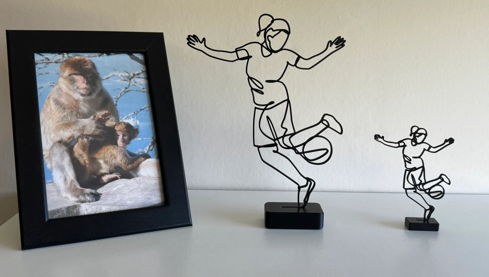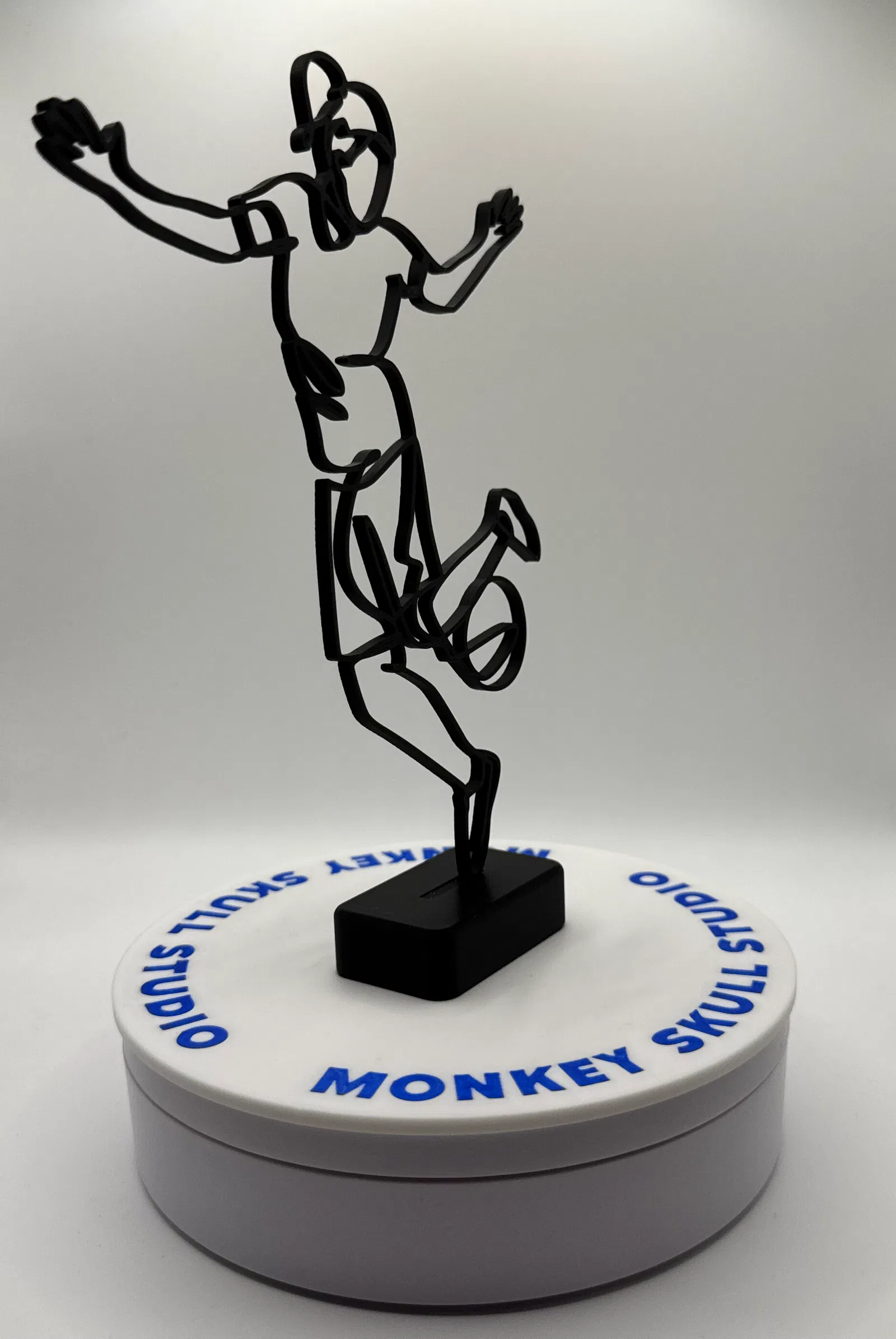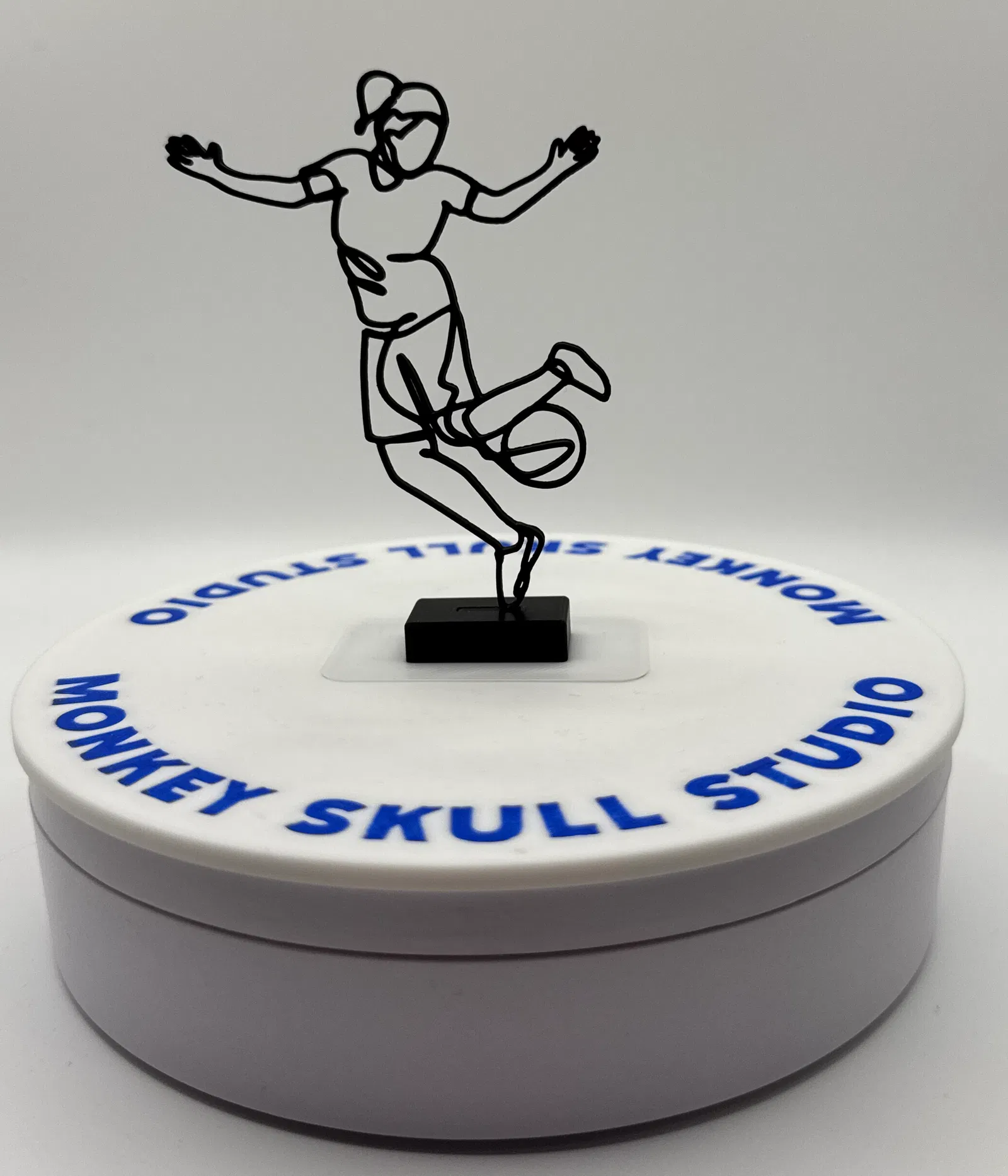 Kiệt tác điêu khắc tối giản theo phong cách dây, khắc họa nữ cầu thủ bóng đá đang chuyển động. Bản in không cần hỗ trợ, có đế tích hợp, dễ in với PLA. Hoàn hảo làm đồ trang trí.