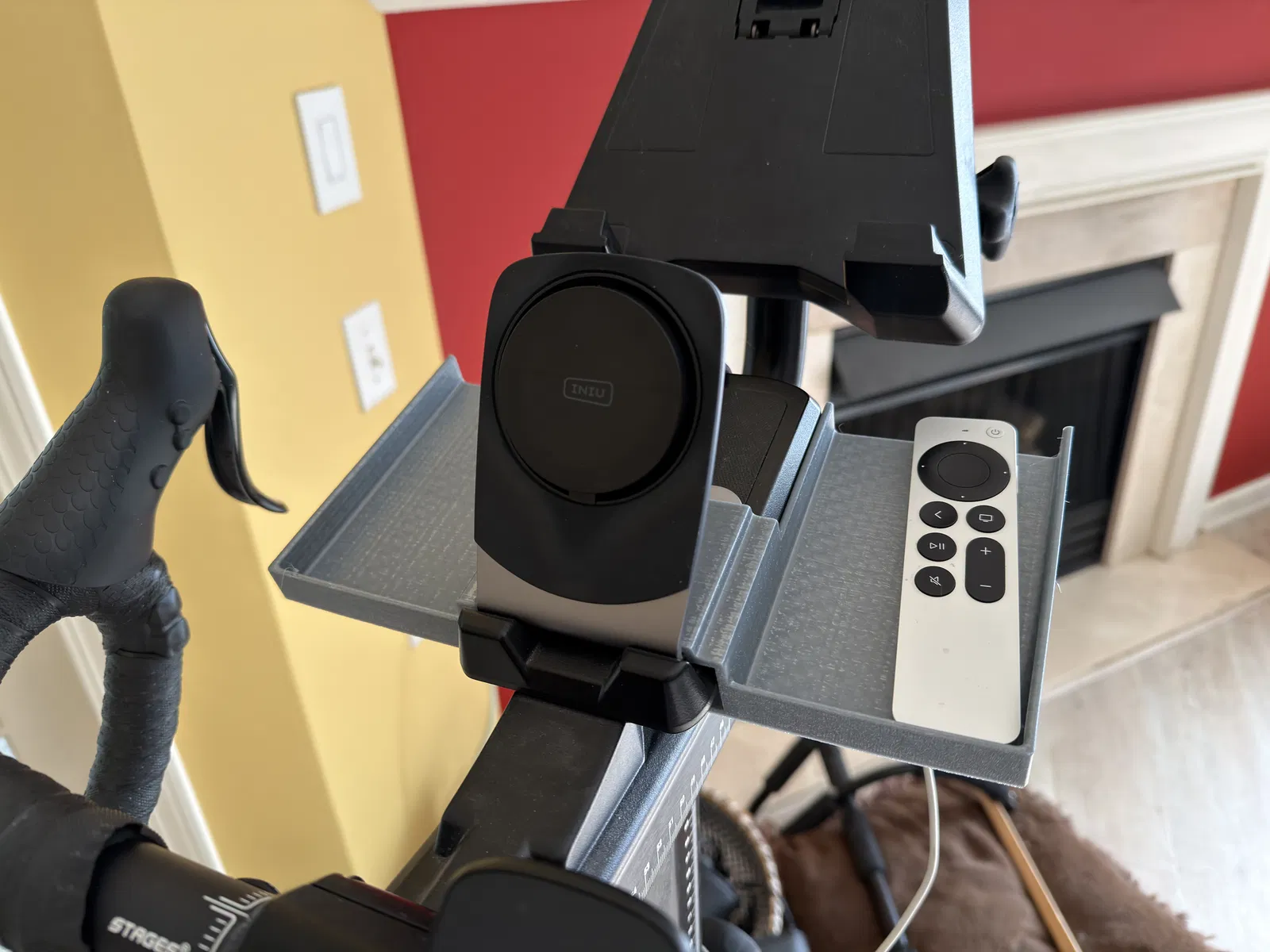 Rổ nhỏ + đế sạc không dây INIU cho Stages SB20. Cái rổ nhỏ này có thể đựng đồ như remote TV ở chỗ dễ lấy. Đồng thời dùng để gắn Sạc không dây INIU lên xe đạp thông minh.