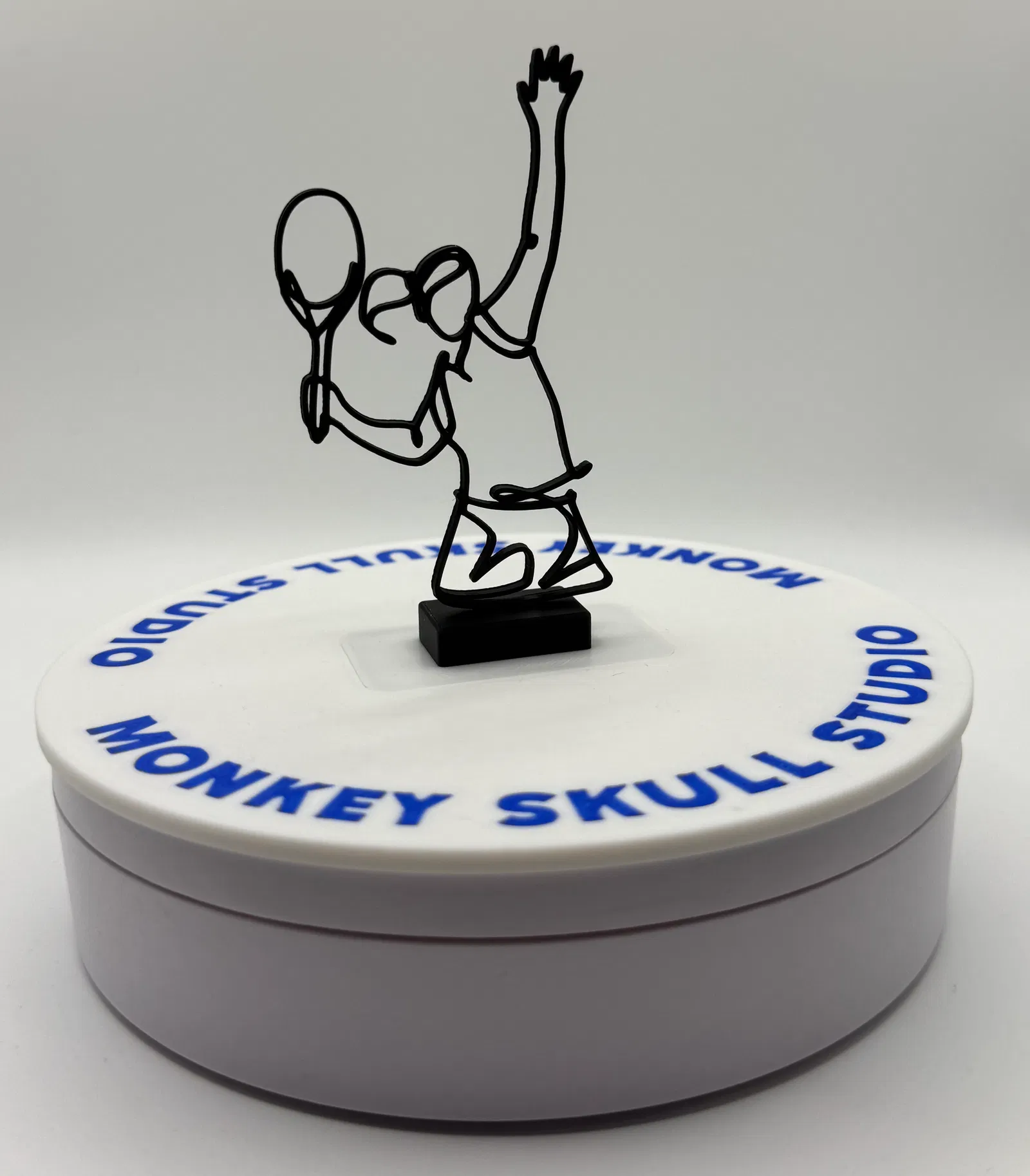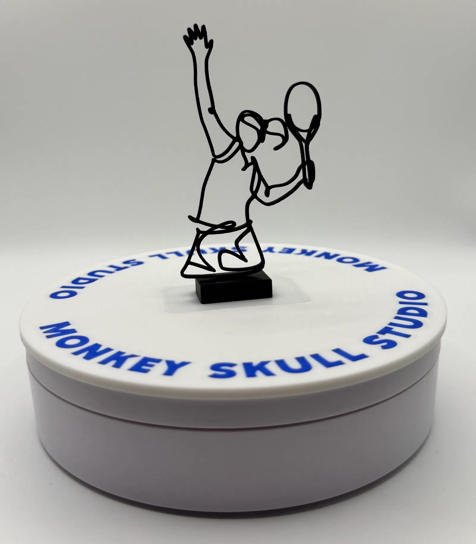 Kiệt tác điêu khắc tối giản theo phong cách dây này nắm bắt sức mạnh và sự duyên dáng của cú giao bóng của vận động viên tennis nữ dưới dạng một đường nét liên tục. Được thiết kế để trưng bày trên bàn làm việc hoặc kệ sách hiện đại, nó hoạt động tuyệt đẹp như một tác phẩm nghệ thuật độc lập hoặc như một phần của bộ sưu tập tennis.