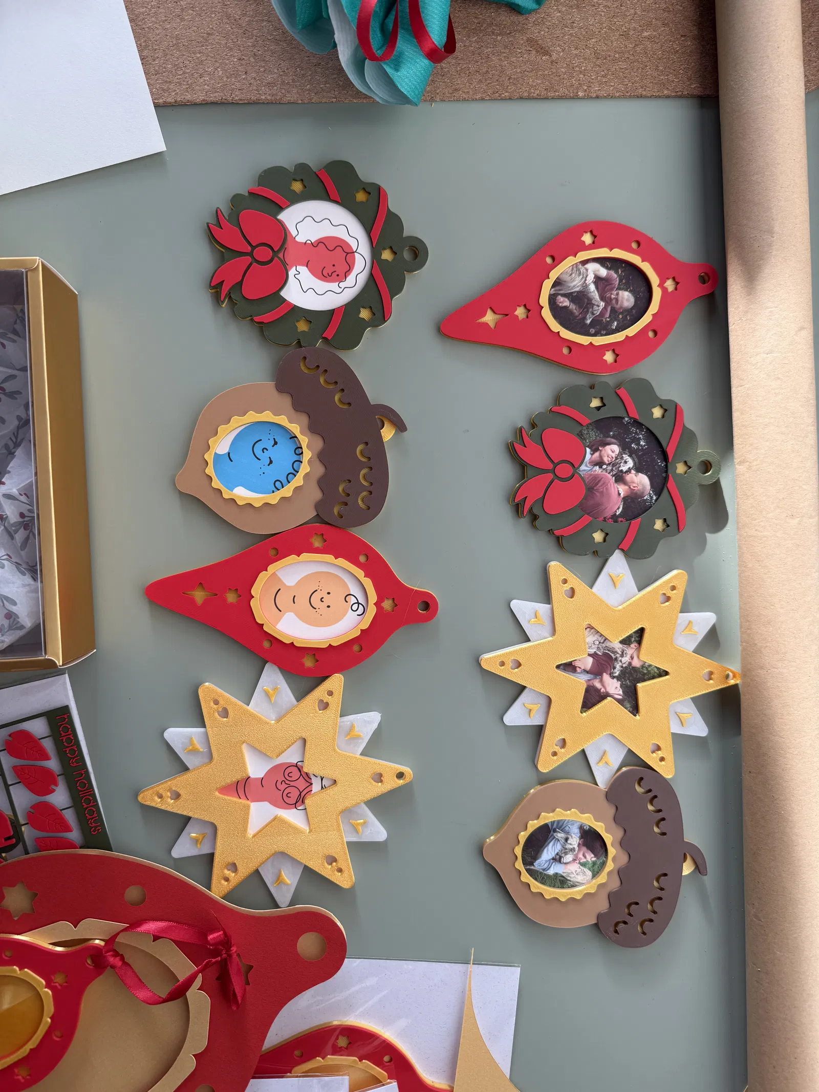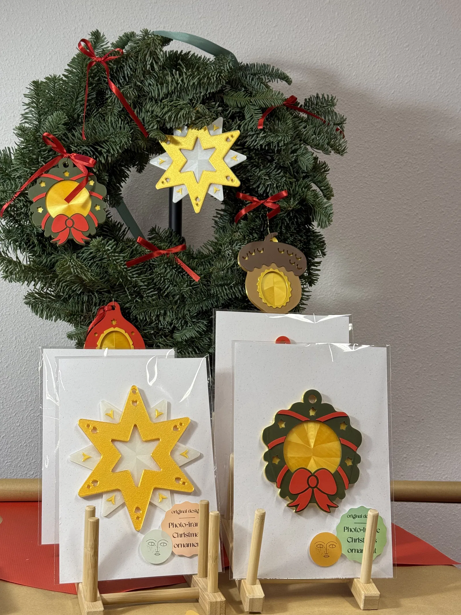 Một vòng nguyệt quế Giáng sinh có thể ghép lại với nhau, kiêm luôn khung ảnh. Hai nửa phẳng ghép lại với nhau bằng nam châm ẩn. Sáng và lễ hội, nó được thiết kế để in phẳng, lắp ráp trong vài giây và giữ những kỷ niệm yêu thích của bạn trong năm trên cây thông Noel (hoặc bất kỳ bề mặt kim loại nào :)).