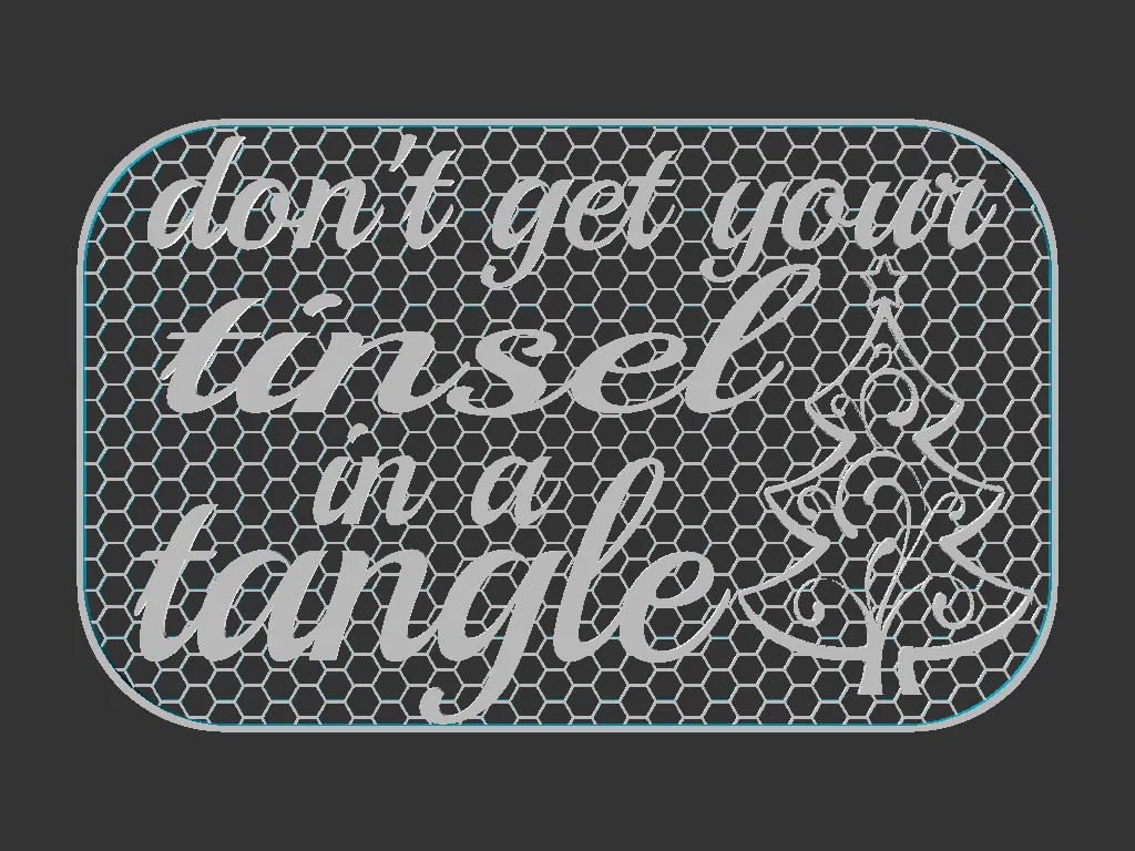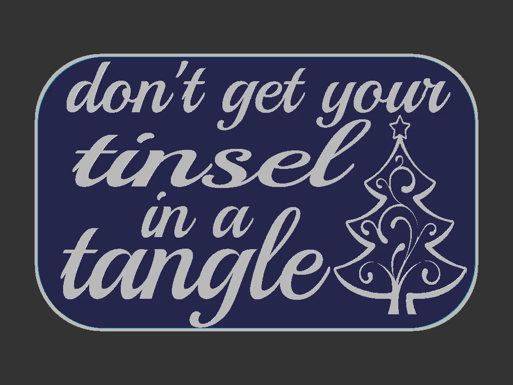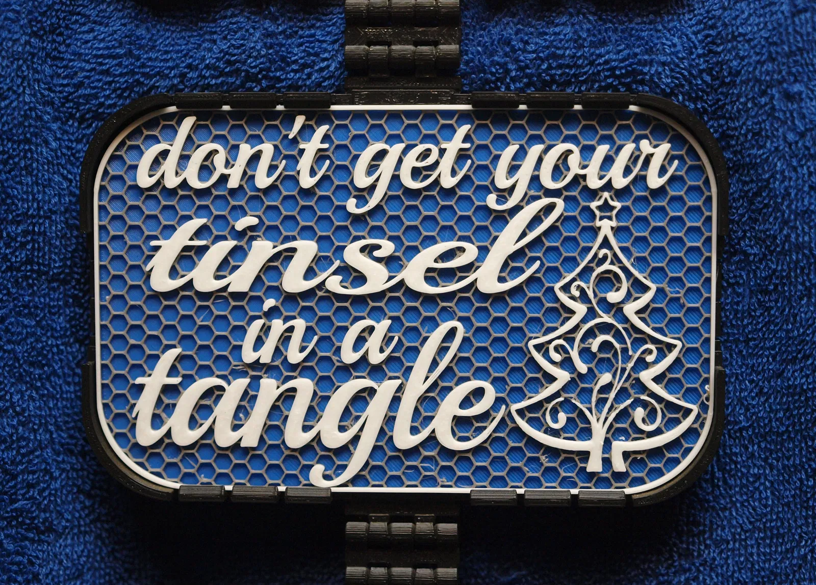 Biển báo 100x160mm ghi "Đừng để đồ trang trí Giáng sinh của bạn bị rối". Bạn sẽ bị thiếu vài hạt lấp lánh. Có cả mô hình dạng lưới và dạng khối, in màu đẹp với Gcode đi kèm. Khung hộp bóng vừa vặn.