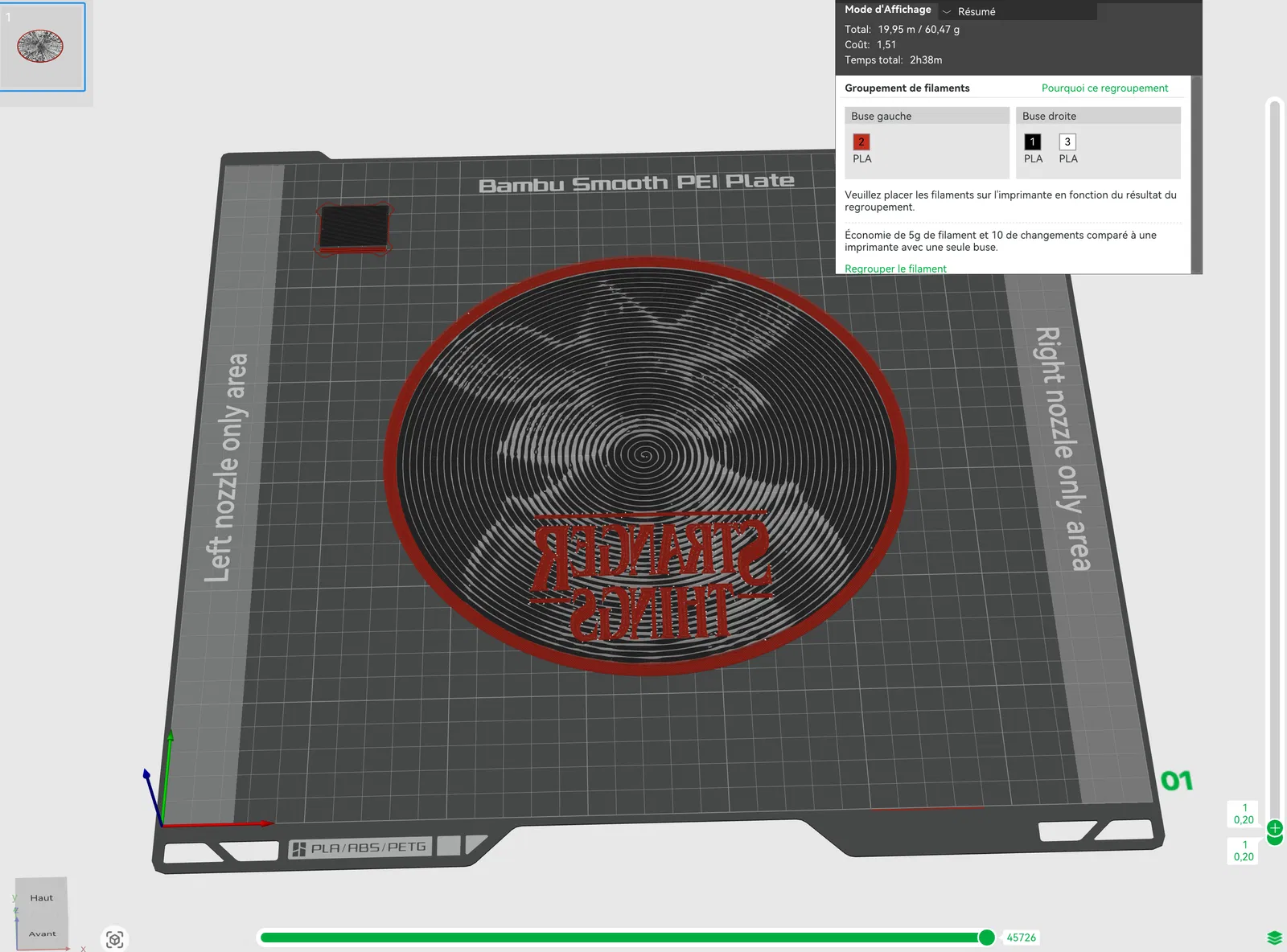 Mô hình 3D Demogorgon từ Stranger Things phiên bản ảo ảnh quang học. File 3MF tối ưu cho Bambulab H2D, in 3 màu (Đen, Trắng, Đỏ), không cần support. Có 2 tùy chọn in: Mặt trước (RECTO) và Mặt sau (VERSO) với bản Easy riêng cho mặt sau.