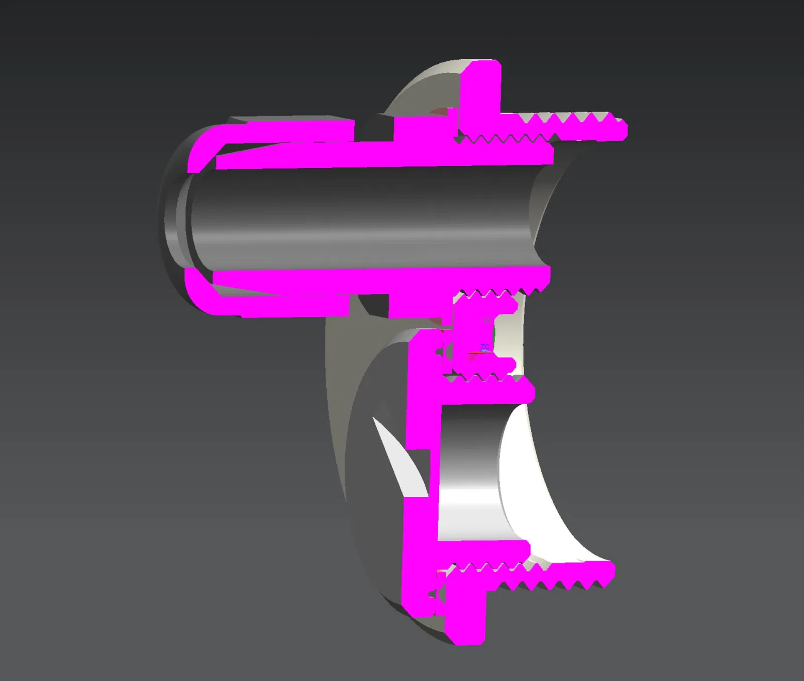 In ấn Vật liệu: PETG (chặn, đai ốc), TPU 95A (gioăng) Giá đỡ: không cần Brim: không cần In nối tiếp (từng phần một) để ren đẹp hơn.
