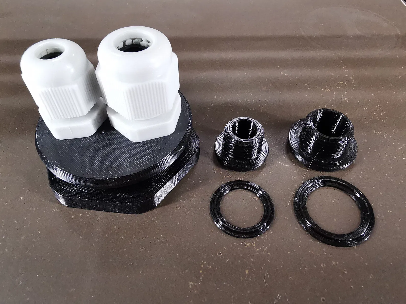 Vật liệu 1x Bộ chuyển đổi PG29 (Ren PG29) [PG29_BlindStuffing_PGthread_to_1xPG9_PGthread_v00.stl] 1x Đai ốc chặn PG29 (Ren PG21) [PG29_Nut_PGthread_v01.stl hoặc [PG29_Nut_PGthread_v11.stl] 1x Đầu nối cáp PG7 (Ren PG7) [xem link] (1-0)x Chặn PG7 [PG7_BlindStuffing_PGthread_v03.stl] 1x Gioăng TPU PG7 (tùy chọn) [PG7_TPU-Sealing_v01.stl] 1x Đầu nối cáp PG9 (Ren PG9) [xem link] (1-0)x Chặn PG9 [PG9_BlindStuffing_PGthread_v00.stl] 1x Gioăng TPU PG9 (tùy chọn) [PG9_TPU-Sealing_v00.stl]