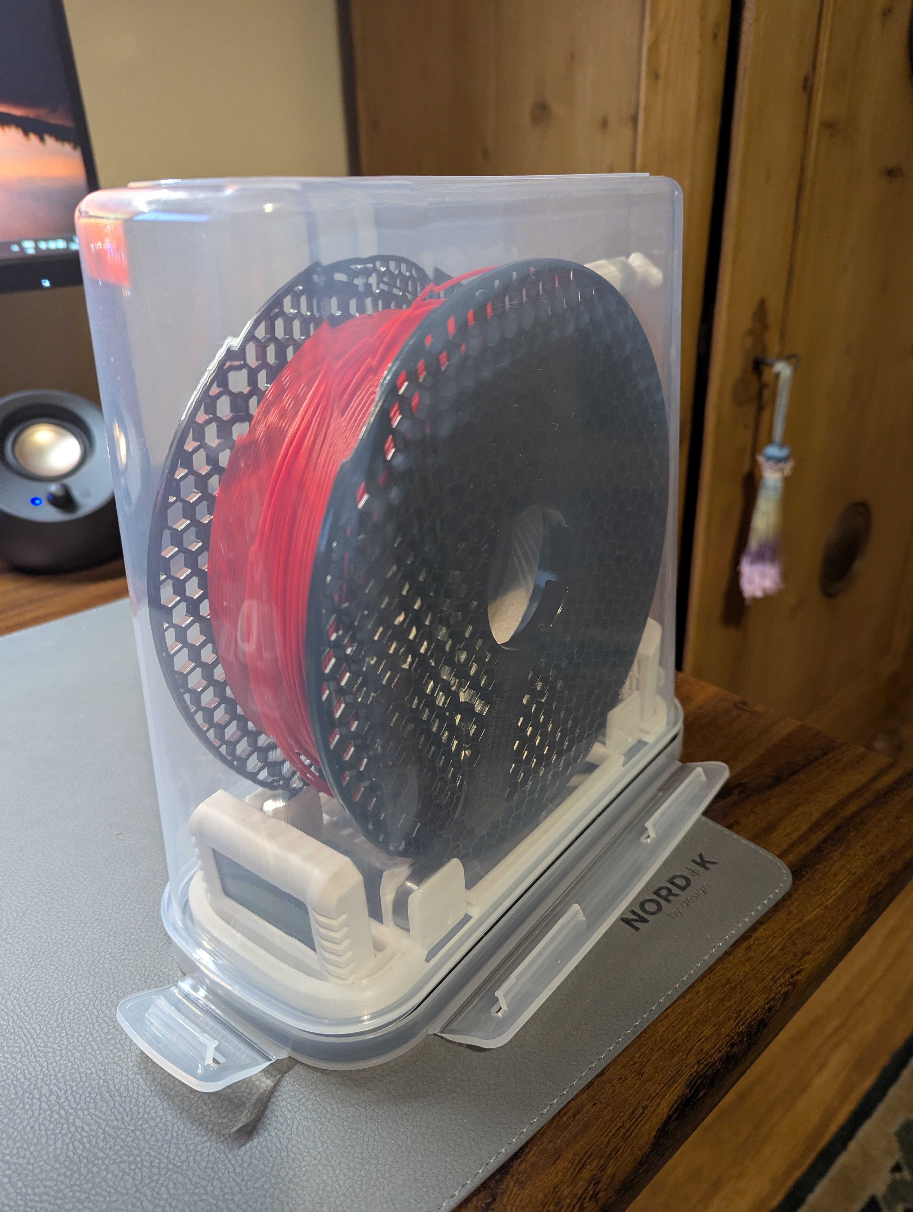 Bản remix này dùng hộp ngũ cốc rẻ hơn kiếm được trên Amazon Úc, cùng với máy đo độ ẩm dùng pin AAA. Người dùng muốn các bộ phận dễ kiếm và đã chỉnh sửa dựa trên kinh nghiệm lắp ráp, chỉ sử dụng các bộ phận cơ bản. In trên Prusa Core One với PLA Ender, độ điền đầy 15%.