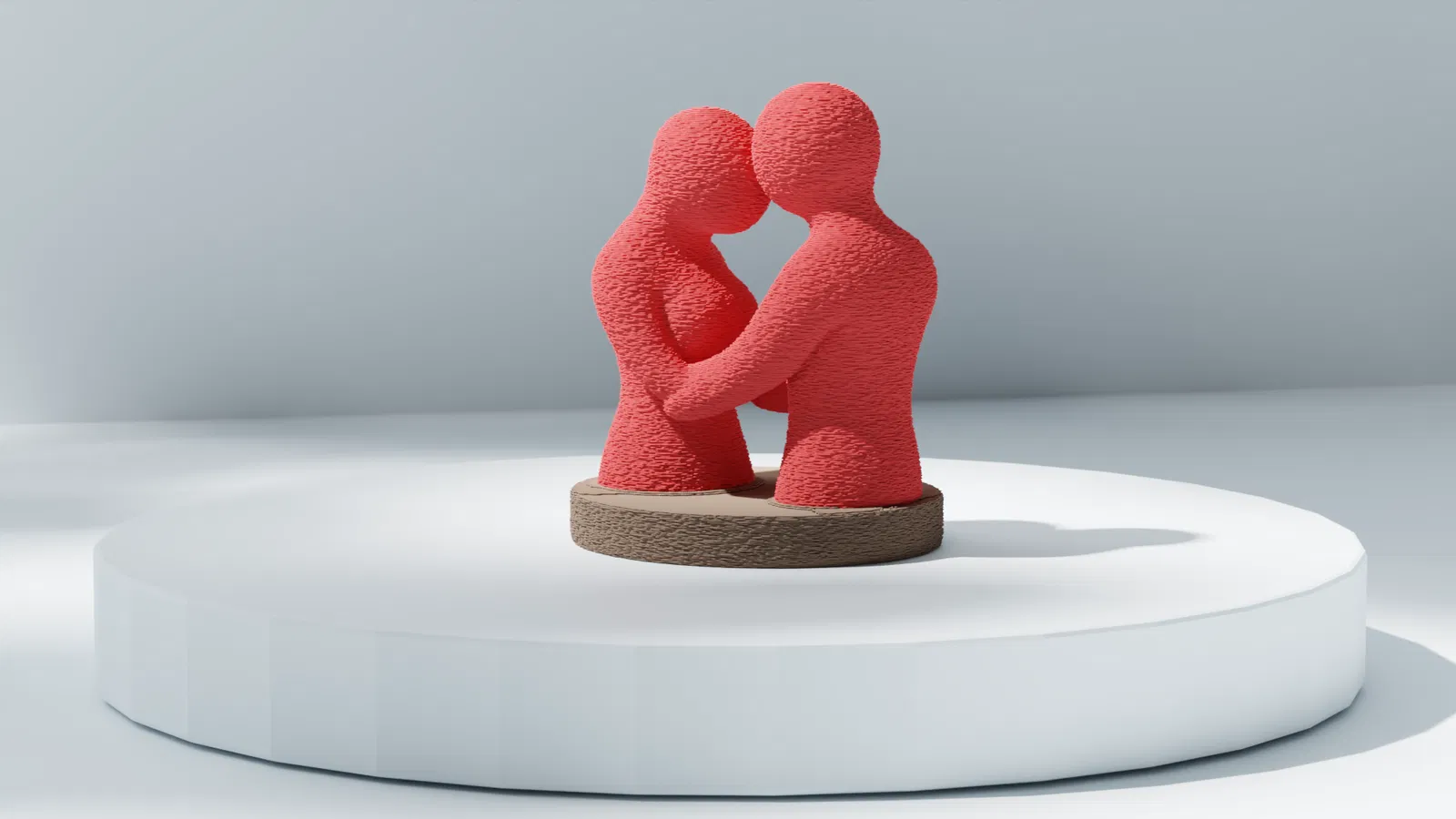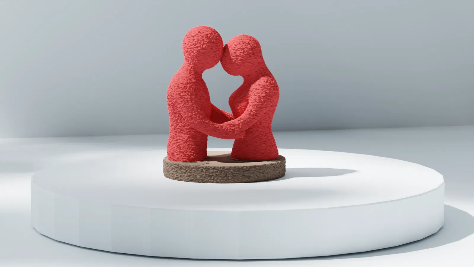 Tác phẩm điêu khắc 3D trừu tượng này ghi lại khoảnh khắc đoàn kết dịu dàng giữa hai nhân vật, họ nghiêng mình nhẹ nhàng về phía nhau trong vòng tay bình yên. Những đường nét uyển chuyển, liền mạch cùng sắc đỏ rực rỡ tạo nên một điểm nhấn đầy cảm xúc cho bất kỳ bộ sưu tập nghệ thuật nào. Các hình khối đan xen thể hiện sự kết nối, hài hòa và sự thân mật thầm lặng. Được thiết kế như một tác phẩm nghệ thuật mang tính biểu tượng, nó hoạt động tuyệt vời cho các chủ đề lãng mạn, các dự án trang trí, hoặc xây dựng cảnh quan cách điệu. Hình dáng tối giản của nó giữ cho sự tập trung vào cảm xúc và hình thức, mang lại cho mô hình một sự hiện diện vượt thời gian, biểu cảm.