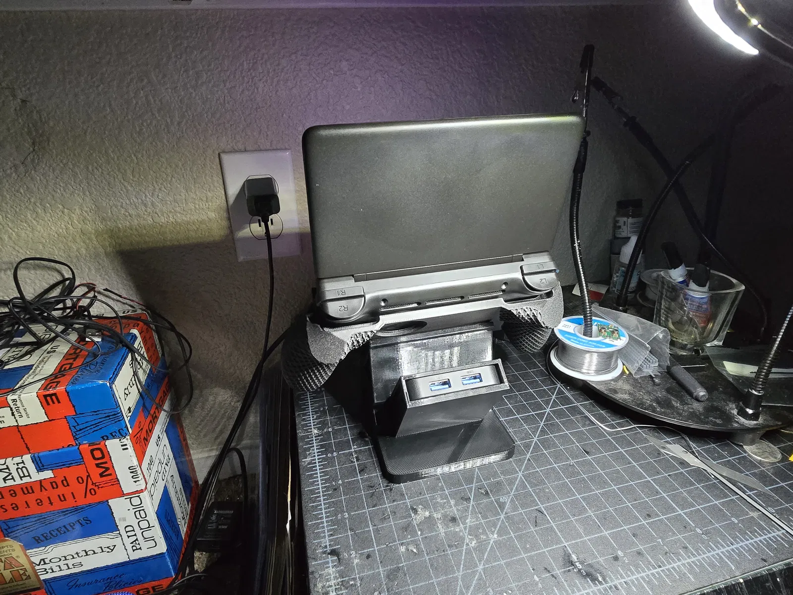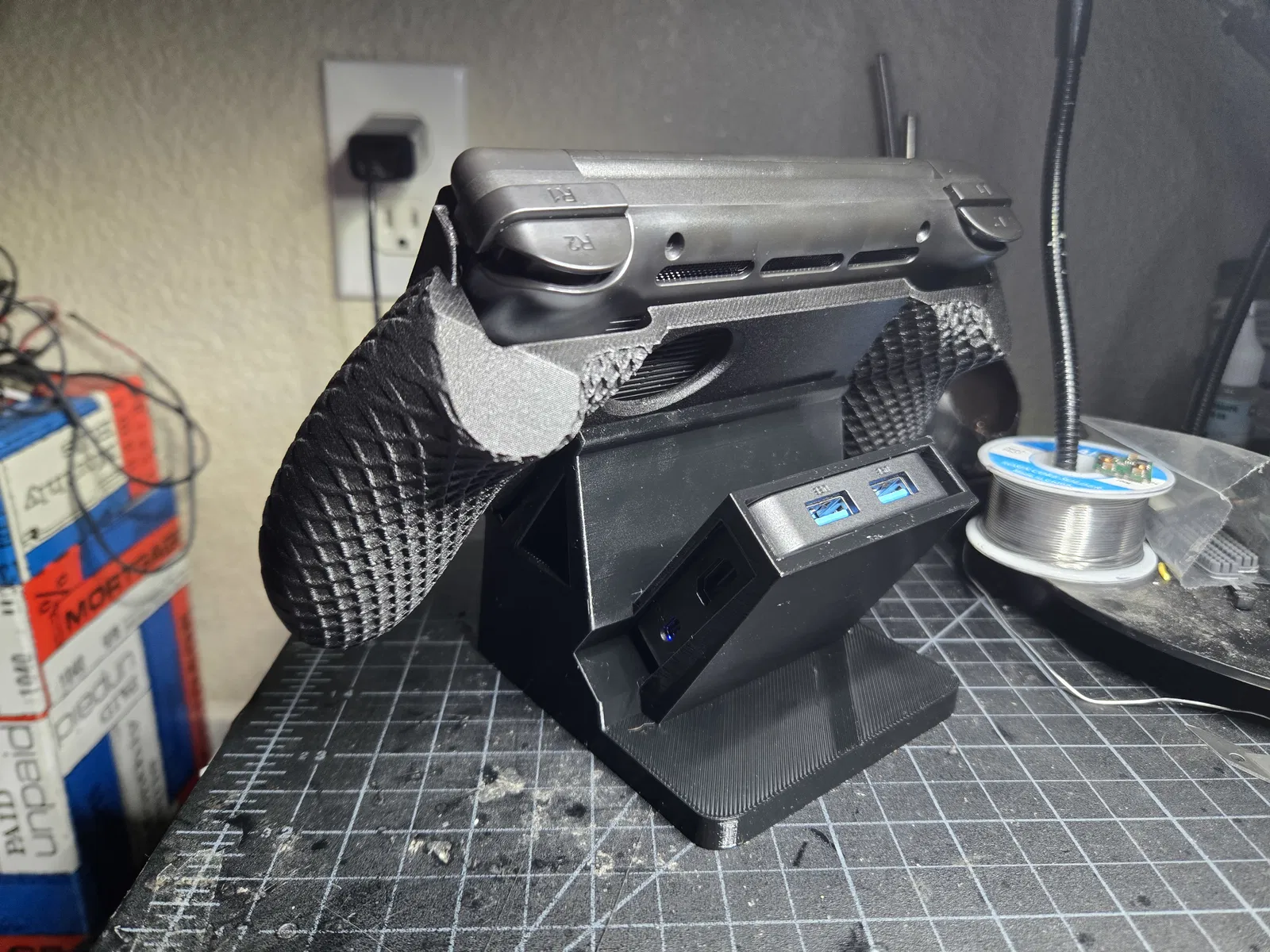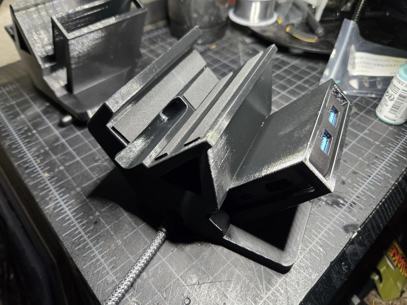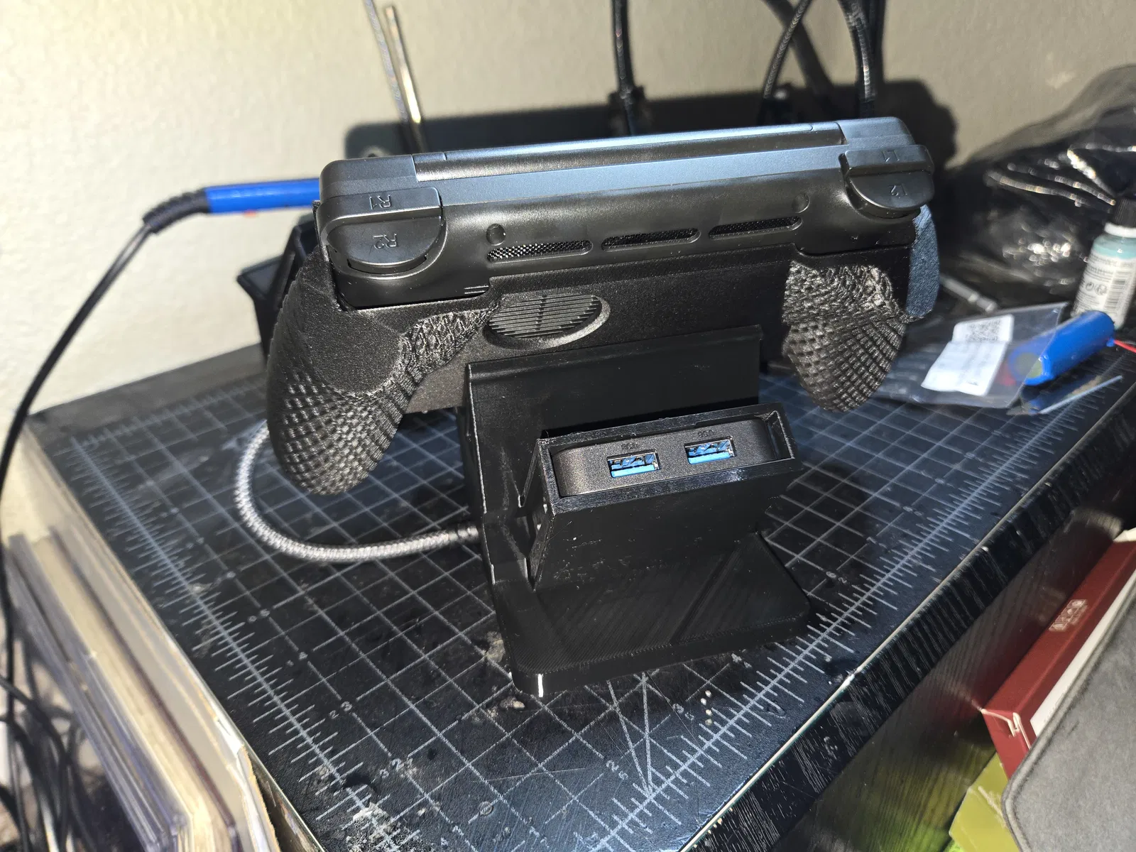 Đây là một đế gắn/giá đỡ dạng 3D print tùy chỉnh dành cho hệ thống chơi game cầm tay AYN Thor. Ngăn phía sau chứa vừa vặn Hub USB-C 6 trong 1 ACASIS (mẫu phổ biến 10Gbps với HDMI 4K 60Hz, cổng sạc PD 100W, cổng USB-A 3.2 và dữ liệu USB-C).