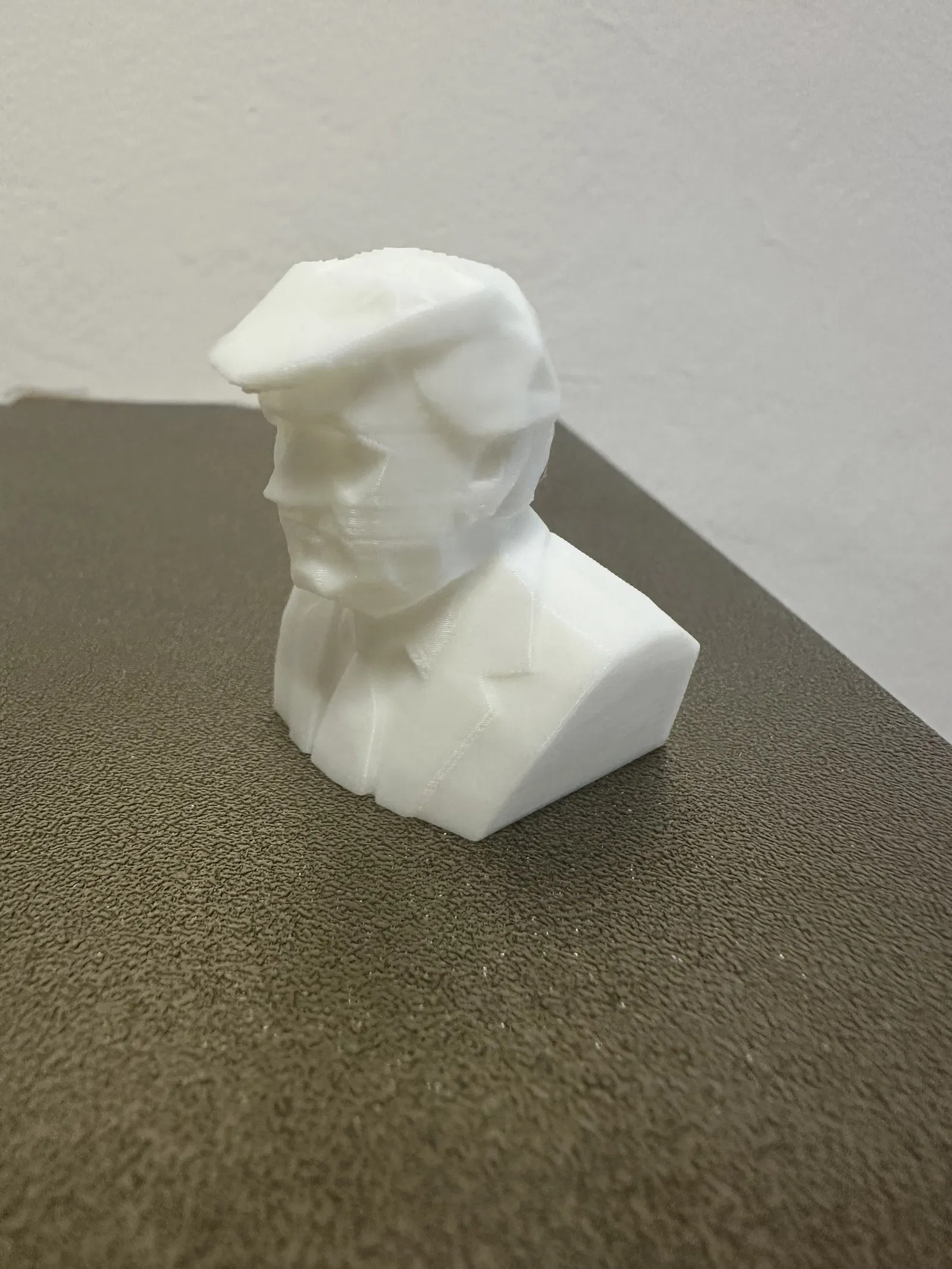 Mô hình bán thân Donald Trump theo phong cách lowpoly, cao 10cm. Thiết kế độc đáo với các khối hình học, dễ in, phù hợp làm vật trang trí hoặc quà tặng ý nghĩa. Thích hợp cho mọi người chơi 3D print.