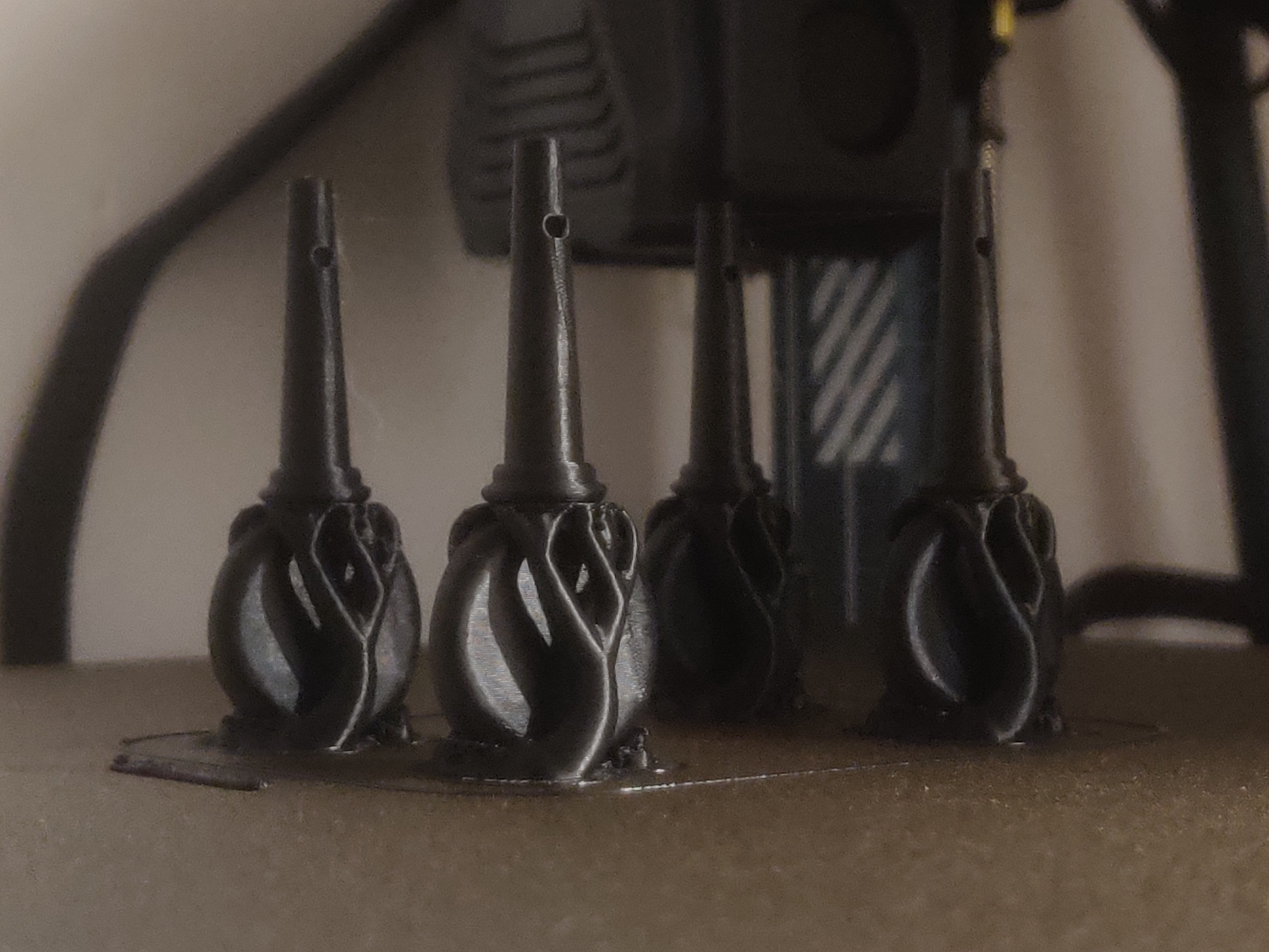Phần cổ cần có vật liệu hỗ trợ cho bề mặt cong gần khay in (đảm bảo lỗ cho thanh carbon không bị dính vật liệu hỗ trợ).