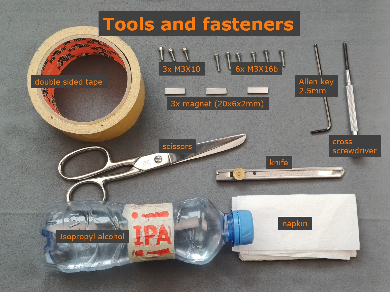 Để lắp ráp, anh em cũng sẽ cần một số công cụ và vật liệu cố định: