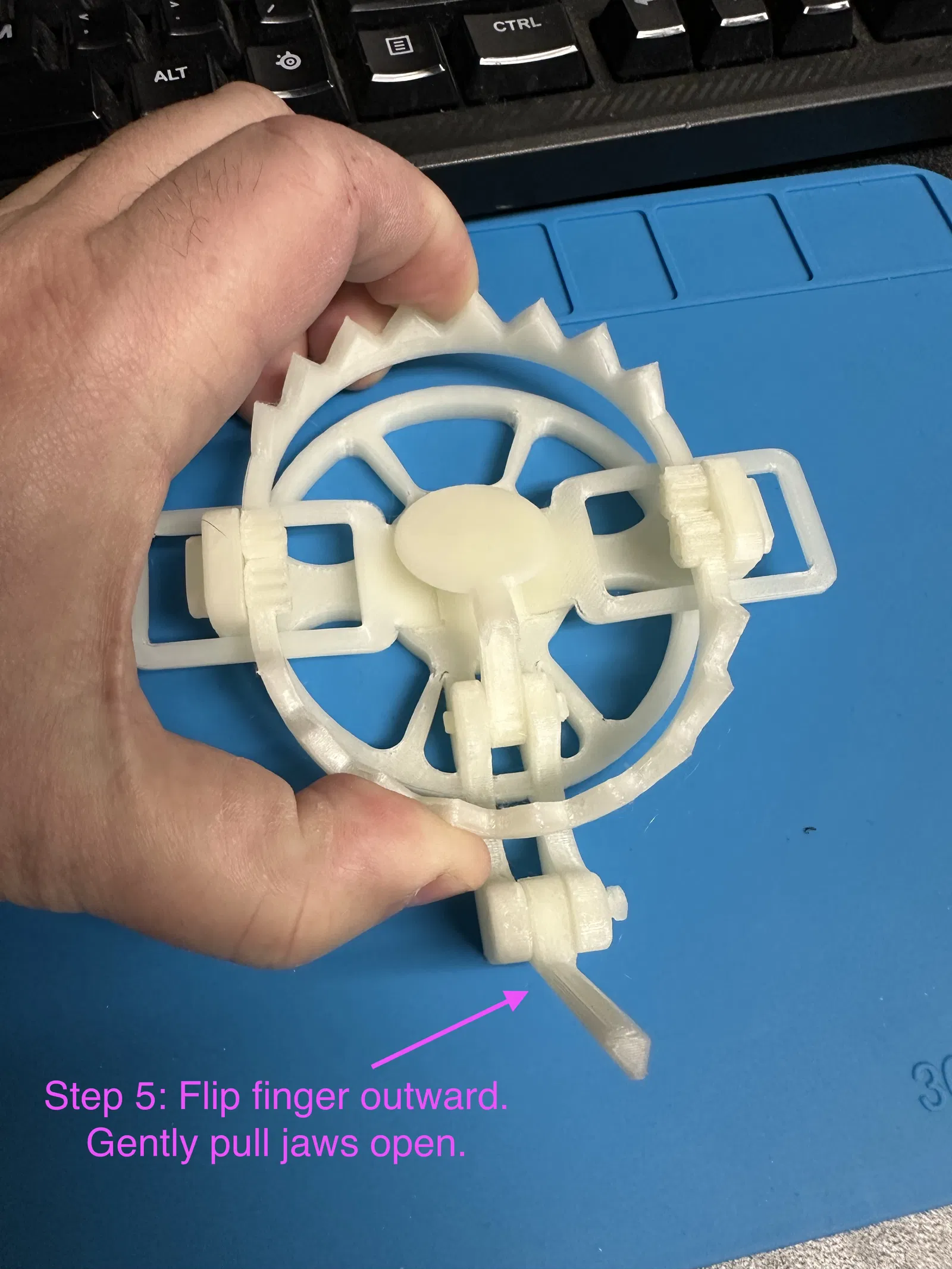 Có thể hơi bẻ cong mấy cái lò xo để nó bật mạnh hơn và giúp cái hàm ngậm lại hết. Mấy cái chốt U giữ hàm đôi khi bị lỏng, nhỏ keo dán vô là hết liền.