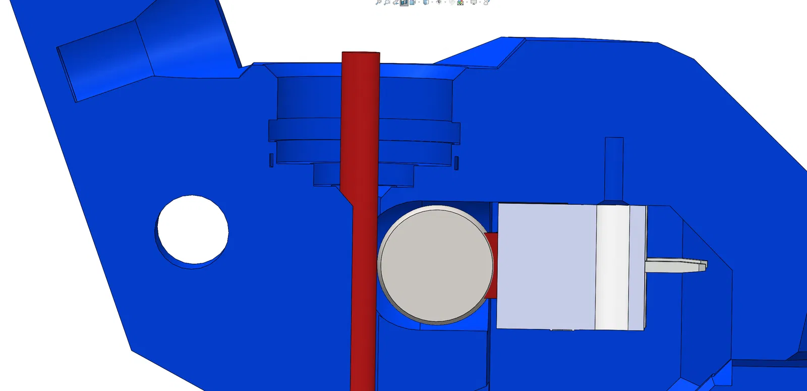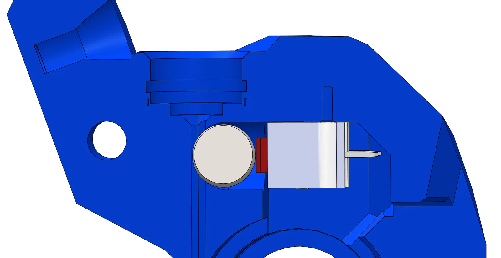 CẬP NHẬT (11/2/2025): Tui đã tải lên một mẫu mới. Tui thấy có quá nhiều ma sát giữa filament và vòng bi. Cái này là do công tắc hành đặt quá gần. Vì vậy, tui đã di chuyển các lỗ gắn công tắc hành ra xa 0.25mm. Giờ thì filament ít bị cản trở hơn nhiều và động cơ extruder cũng không phải làm việc vất vả như trước.