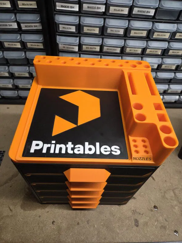 Mẫu này vẫn đang được phát triển, mình sẽ tiếp tục bổ sung thêm các bộ phận và tủ với các logo khác. Mình thiết kế tủ lưu trữ này để đủ không gian chứa tất cả các bộ phận nhỏ cho máy in 3D hoặc các sở thích khác của bạn.
