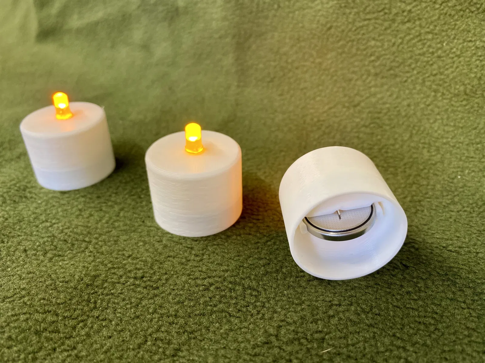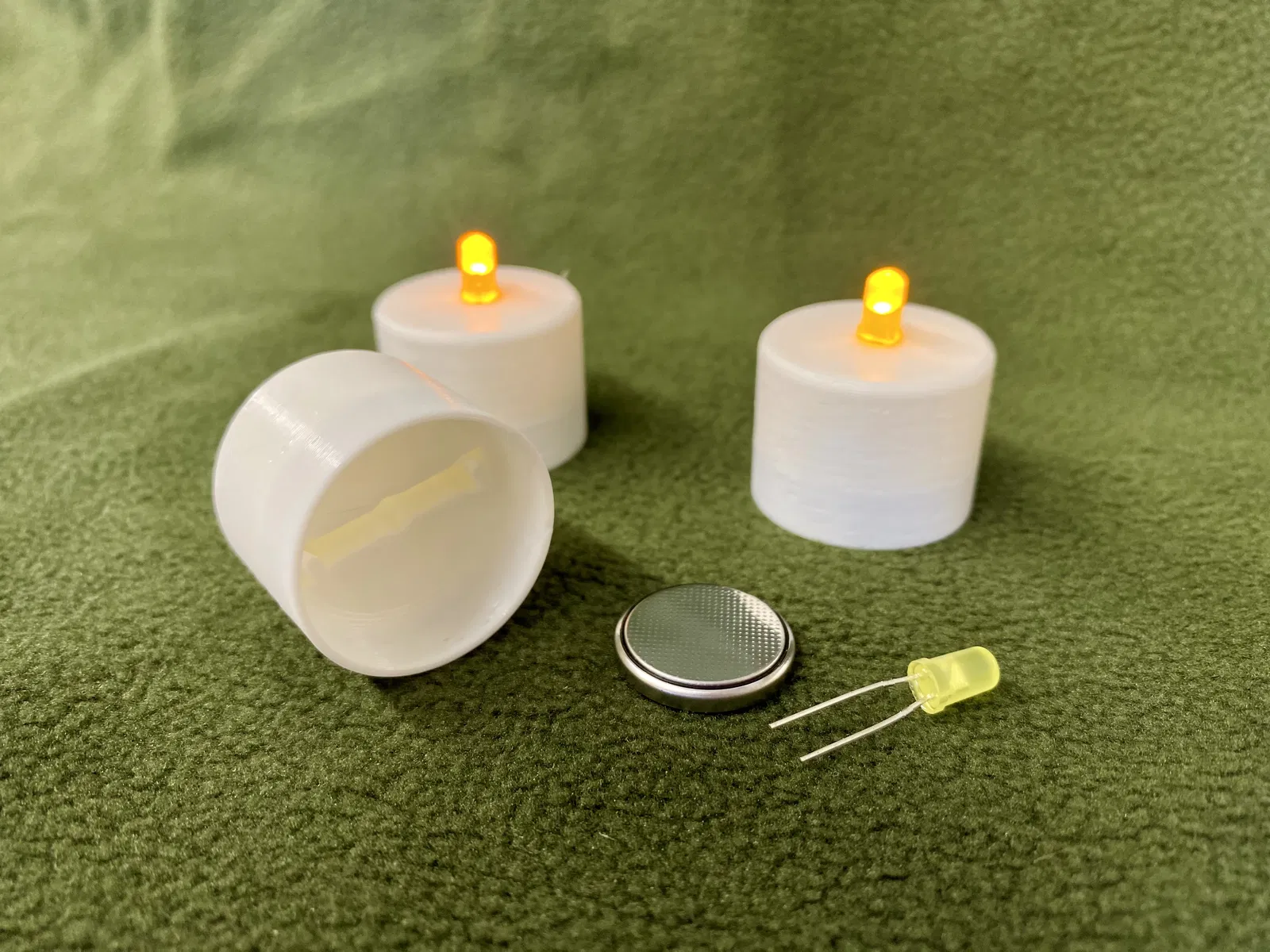 Cái đế nhỏ này để đựng LED 5mm và pin CR2032. Chỉ cần bấm các bộ phận lại với nhau là bạn đã có ngay một ngọn đèn trà chạy bằng pin đơn giản. Không cần keo hay hàn gì hết. In ngược lại, không cần support. Có loại LED nhấp nháy đó, xài cái này là hợp lắm luôn.