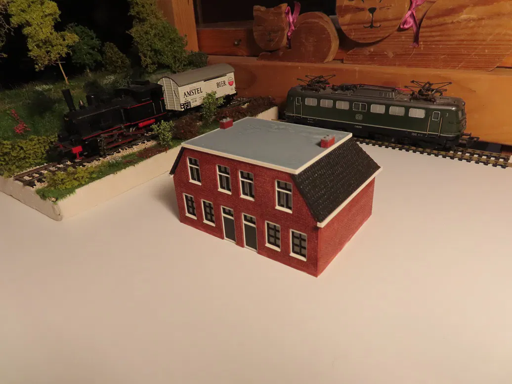 Đây là ngôi nhà kiểu Hà Lan đầu tiên trong loạt series 'Weidedorp' của tui, được tui tạo ra ở tỉ lệ 1:87 H0, dành cho cảnh xe lửa mô hình. Ngôi nhà này là kiểu nhà hai hộ điển hình cho các vùng phía đông của đất nước. Mô hình này in tốt nhất với đầu phun 0.25mm.
