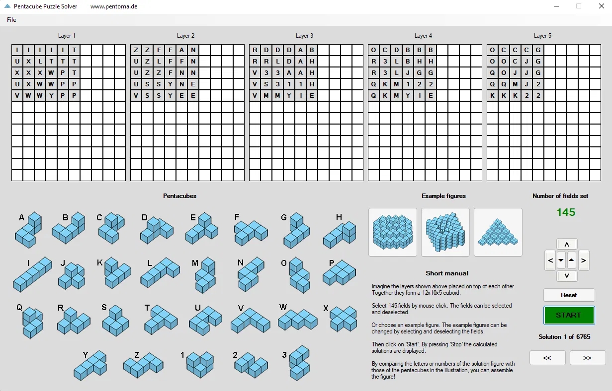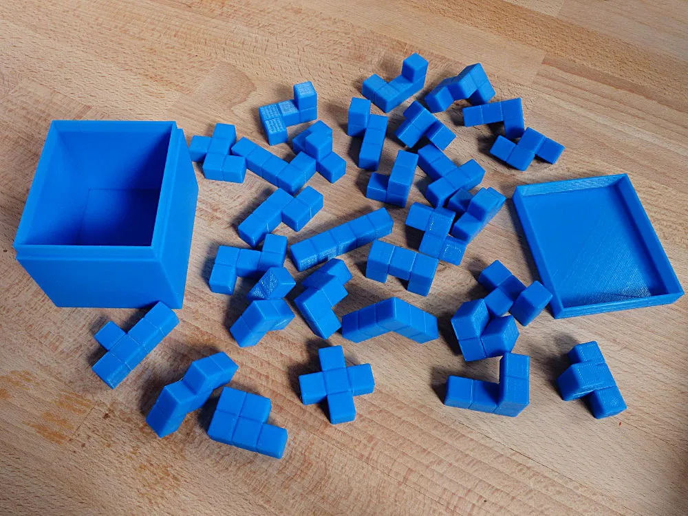 Pentacubes gồm 5 khối lập phương kết nối với nhau. Có tổng cộng 29 pentacubes. Tổng cộng có 145 khối lập phương. Trong hộp có thể chứa 5x5x6 = 150 khối lập phương. Thiếu 5 khối lập phương để lấp đầy hộp bằng pentacubes. Nếu bạn in pentacube_I hai lần và sử dụng giải pháp được hiển thị trong hình, hộp sẽ được lấp đầy hoàn toàn.