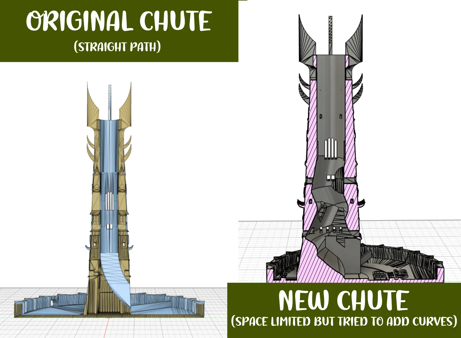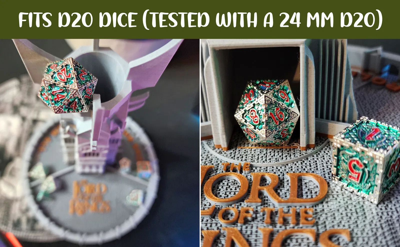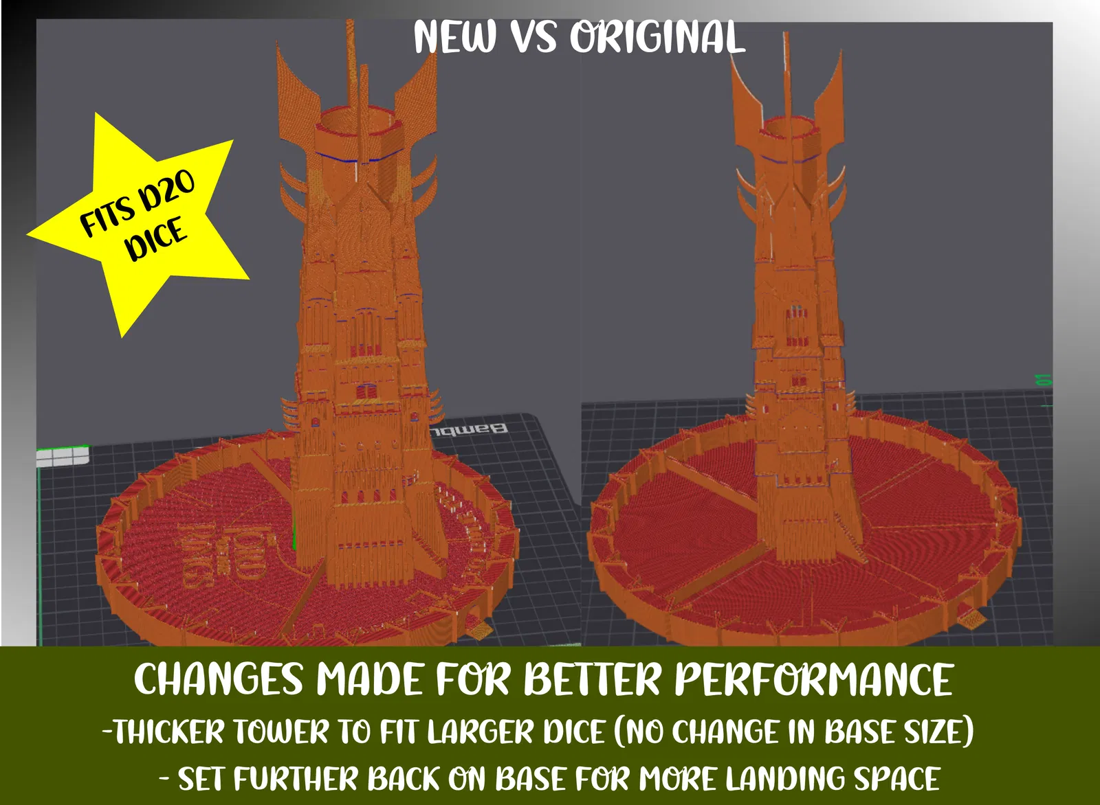 Tất nhiên, tất cả những thay đổi này đã dẫn đến sự khác biệt về mặt thẩm mỹ so với vẻ ngoài của tháp, vì vậy nếu bạn là người theo chủ nghĩa thuần túy LOTR và yêu cầu một chiếc tháp xúc xắc mảnh mai, chính xác như ảnh thì đây không phải là thứ dành cho bạn. Tuy nhiên, nếu bạn muốn một chiếc tháp xúc xắc có thể in được, chức năng, thú vị và vẫn dễ nhận biết ngay lập tức, tôi đã lo liệu cho bạn. Và thêm nữa, nó còn hoạt động như một giá đỡ trang sức hoặc một lọ hoa in 3D!