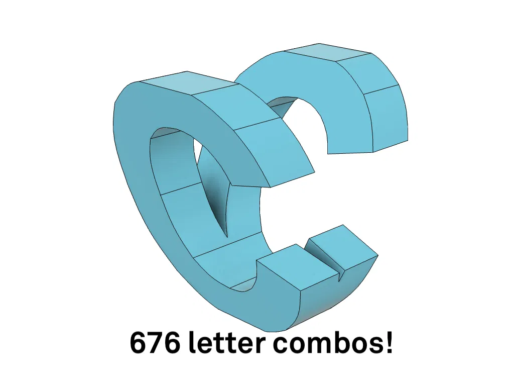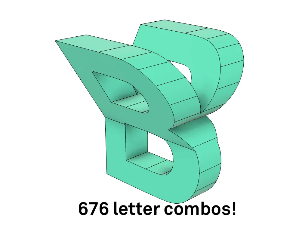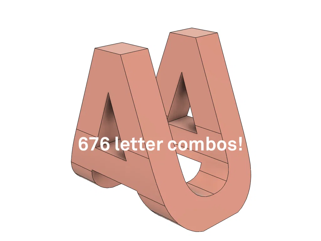 Một số kết hợp chữ cái có thể in ngay. Một số khác, đặc biệt là các chữ cái có đường cong, cần phải cắt làm đôi. Một số hình dạng cần có support nhưng bạn có thể đặt chúng ở bên trong chữ cái.
