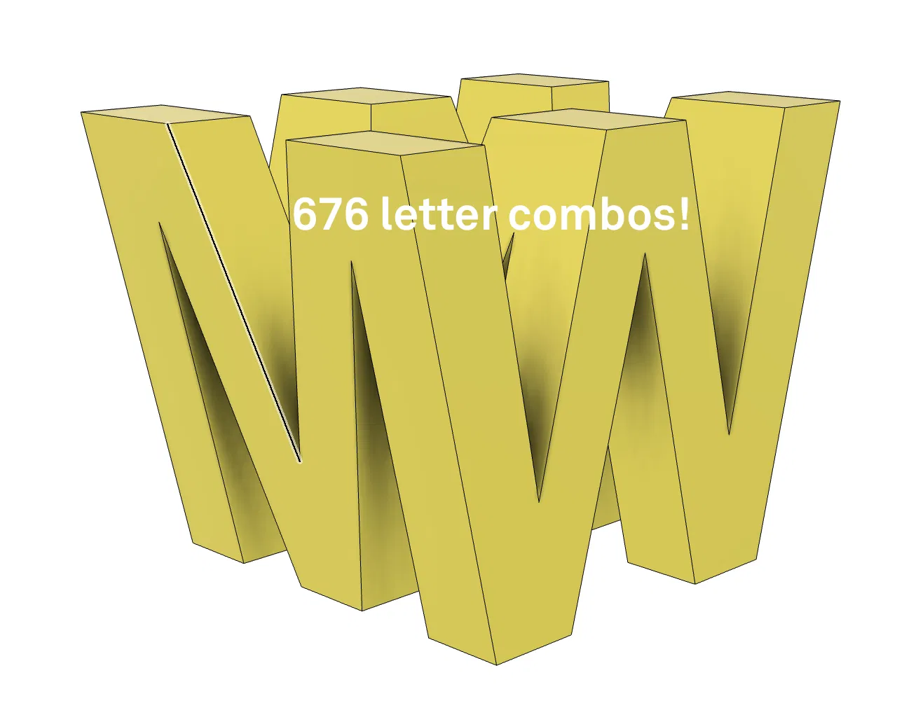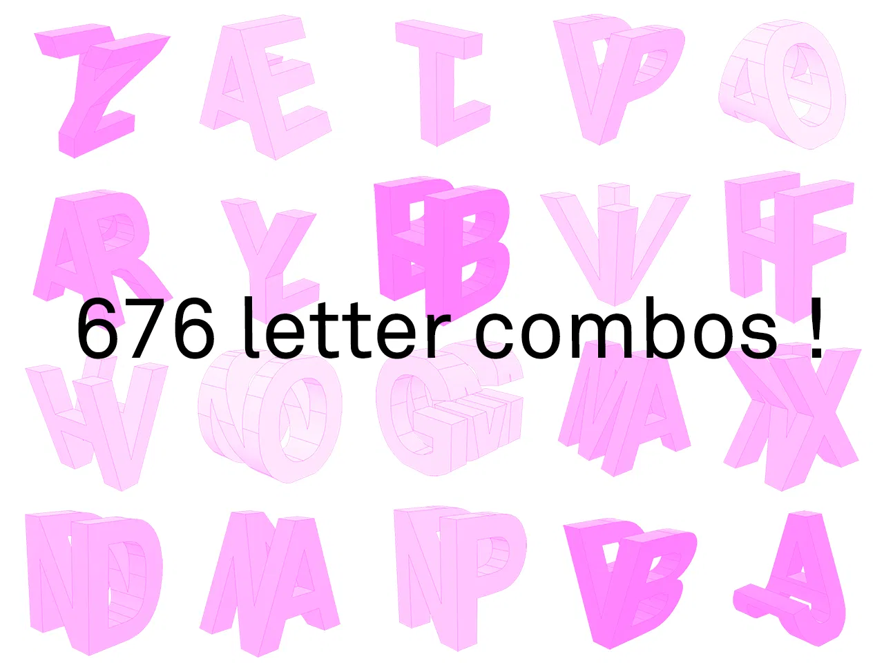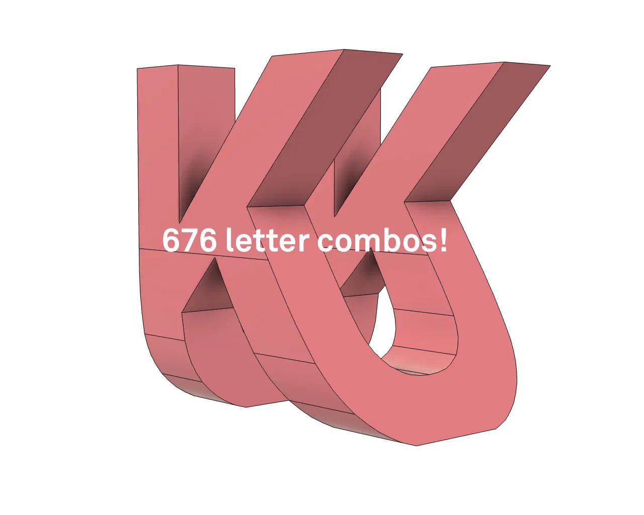 Chữ cái chiếu đôi hay "chữ đôi". 26 x 26 = 676 cặp chữ cái. Tuyệt vời để trang trí bàn tiệc, làm quà tặng, hoặc tạo logo.
