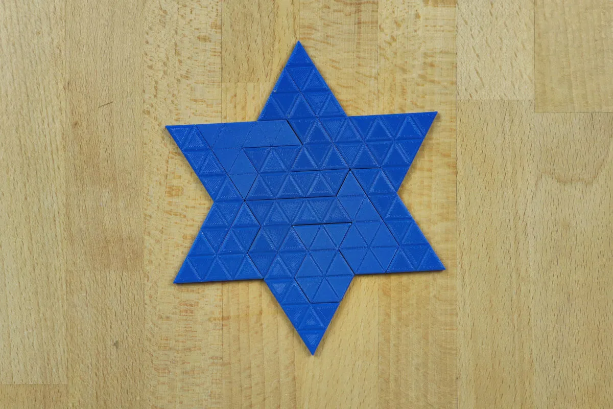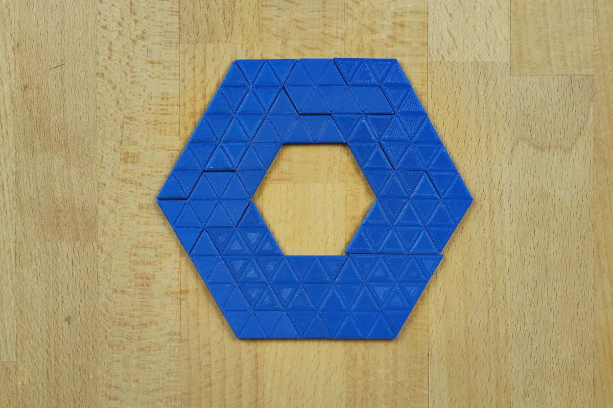 Bộ Trihalfhex puzzle kèm hộp; in thử và giải nó nha; (Các mảnh ghép có thể xài hai mặt)
