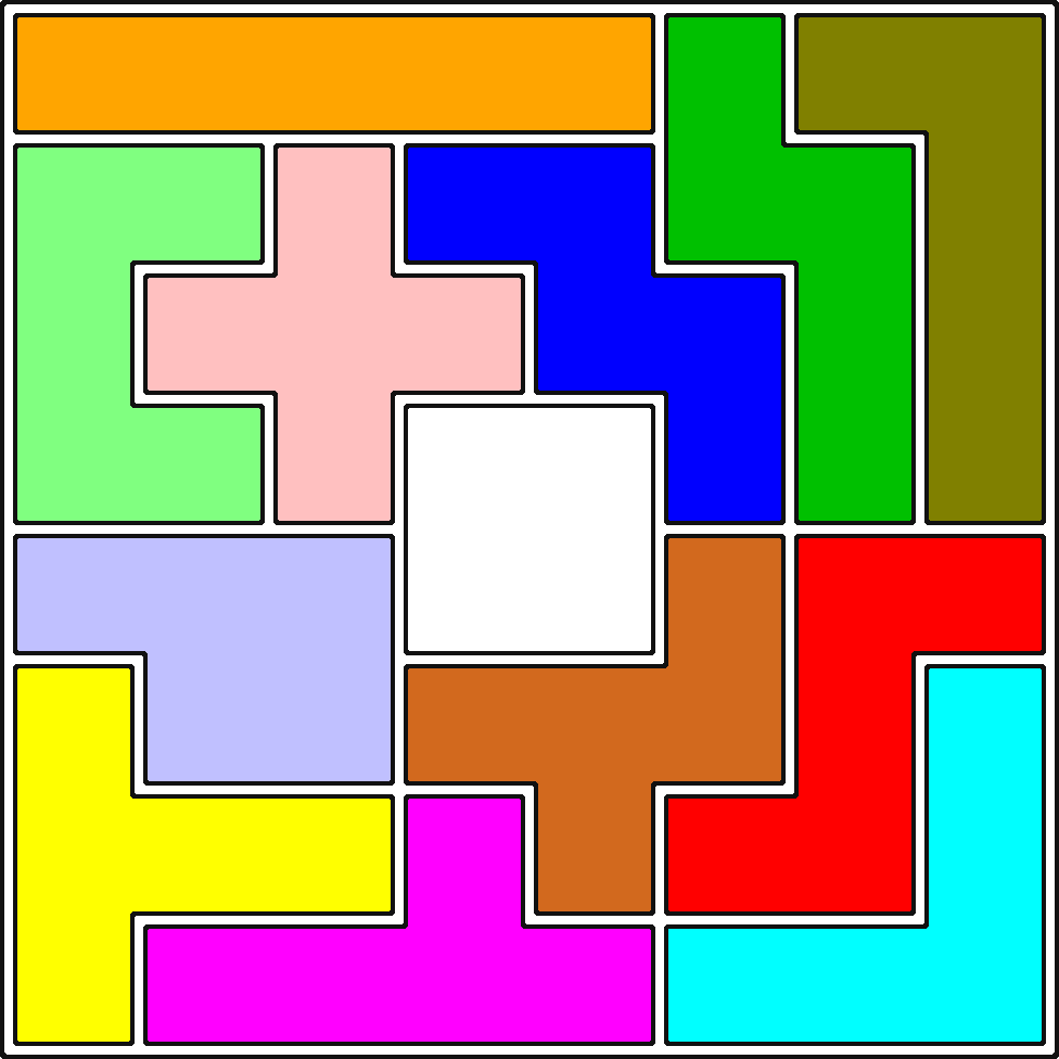 - Hộp 3x4x5 sử dụng 12 pentomino. Mê cung này là khó nhất, mặc dù nó có 3940 lời giải khác nhau.