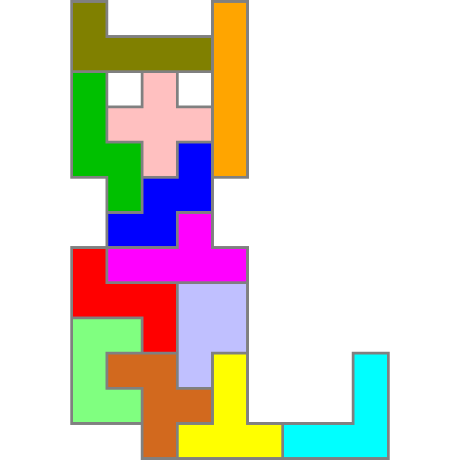 - Đối với hộp 1x8x8, cần có O-tetromino ngoài 12 pentomino.