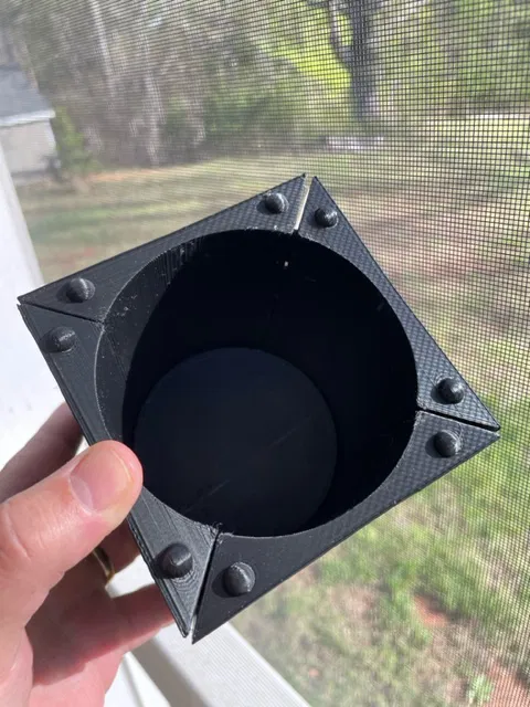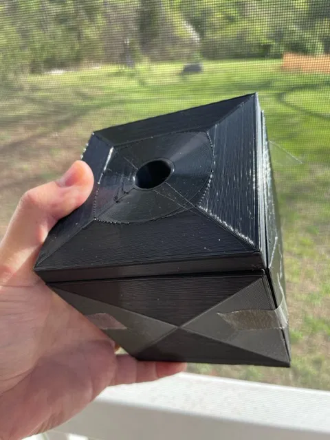 Nếu bạn đã từng làm khuôn/mẫu cao su của cái gì đó mà phải dùng bìa carton, băng keo và que kem... thì nó có thể rất bừa bộn và bực bội. Cái hộp khuôn sáu mặt này có thể giúp cuộc sống của bạn dễ dàng hơn và nó có thể tái sử dụng. Tỉ lệ 3d để làm cho nó có kích thước bạn muốn. Tôi vẫn đang thử nghiệm cái này và có kế hoạch thêm một vài cái tay cầm để kéo khuôn ra và có lẽ là một vài chỗ để gắn ốc bướm để giữ nó lại... hiện tại bạn sẽ dùng dây thun để giữ nó lại trong quá trình làm mẫu. Bạn sẽ cần phải khoan một lỗ ở bất kỳ mặt nào bạn muốn đổ nhựa hoặc sáp vào khuôn - cập nhật - tôi đã thêm một tệp có lỗ. Vừa thêm các tệp .3DM cho những ai muốn chỉnh sửa.