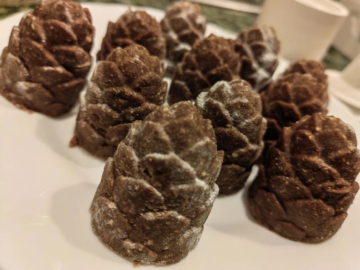 Là một người mê mẩn món bánh tổ ong (wasp nests), năm ngoái tui đã làm một cái khuôn chịu được việc gõ bánh ra và giúp dễ dàng tạo lỗ để cho kem vào. Năm nay tui muốn làm khuôn có hình dáng Giáng Sinh hơn, và quả thông được tui thấy là lý tưởng và mang không khí Giáng Sinh hơn là chỉ làm hình tổ ong đơn thuần.