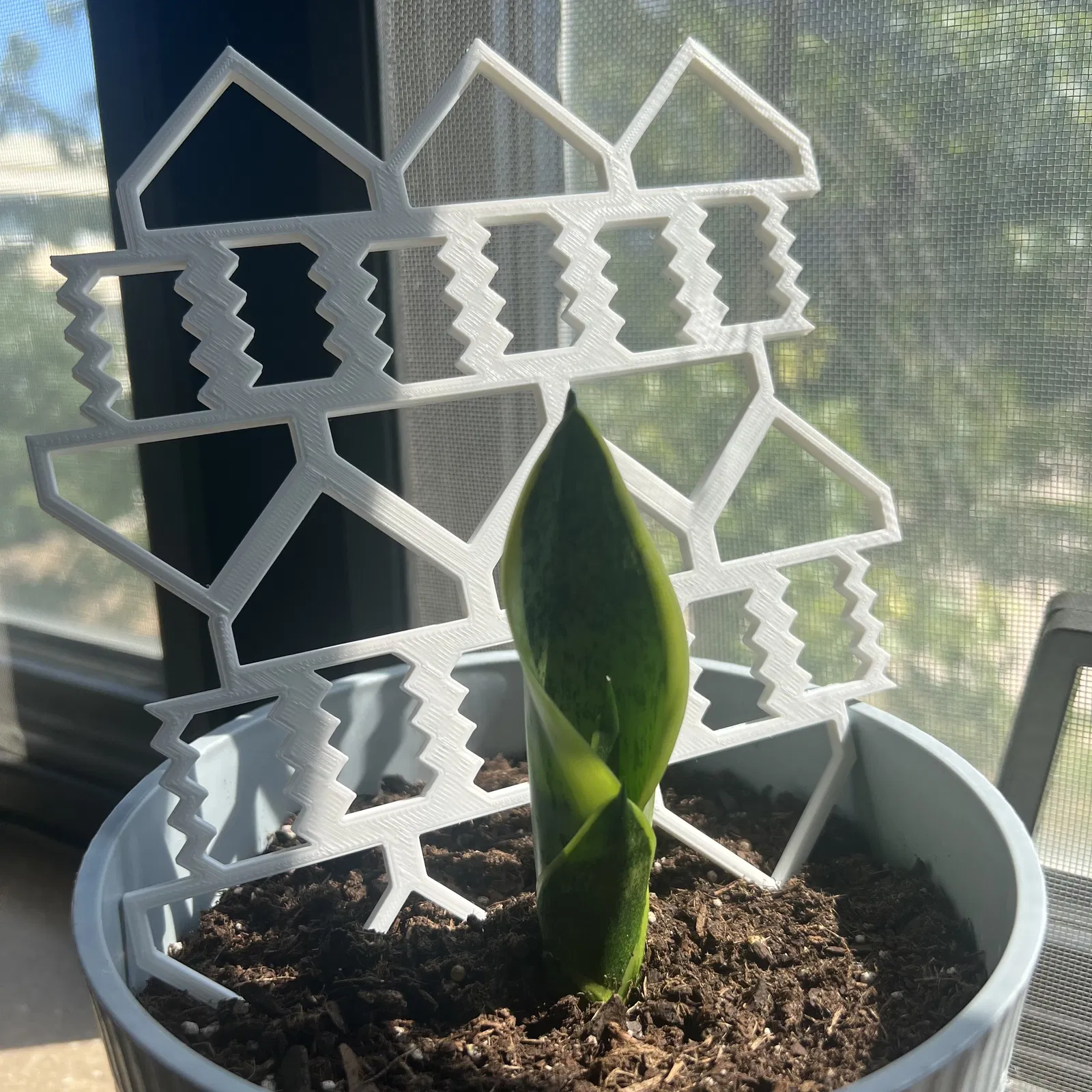 Giá leo cây đơn giản với hoa văn vòi phun đùn xếp gạch. Mô hình này bao gồm các phiên bản cao và thấp của đế, có thể nối lại với nhau để chống đỡ cây cao hơn. Đảm bảo bản in đủ chắc chắn để hỗ trợ cây của bạn.