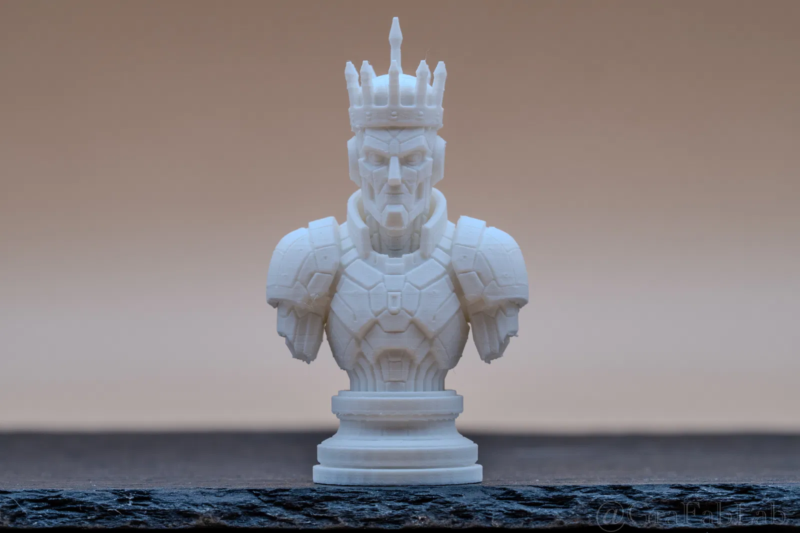 Quân "Vua" là trái tim của Đoàn quân Kim loại, được rèn từ hợp kim hiếm có khả năng chống bức xạ vũ trụ. Nó ngự trị trên bàn cờ, ánh mắt đỏ rực xuyên thủng mọi phòng thủ. Vua không được tạo ra để chiến đấu, mà là để thống trị, có khả năng nhìn thấu mọi nước đi.