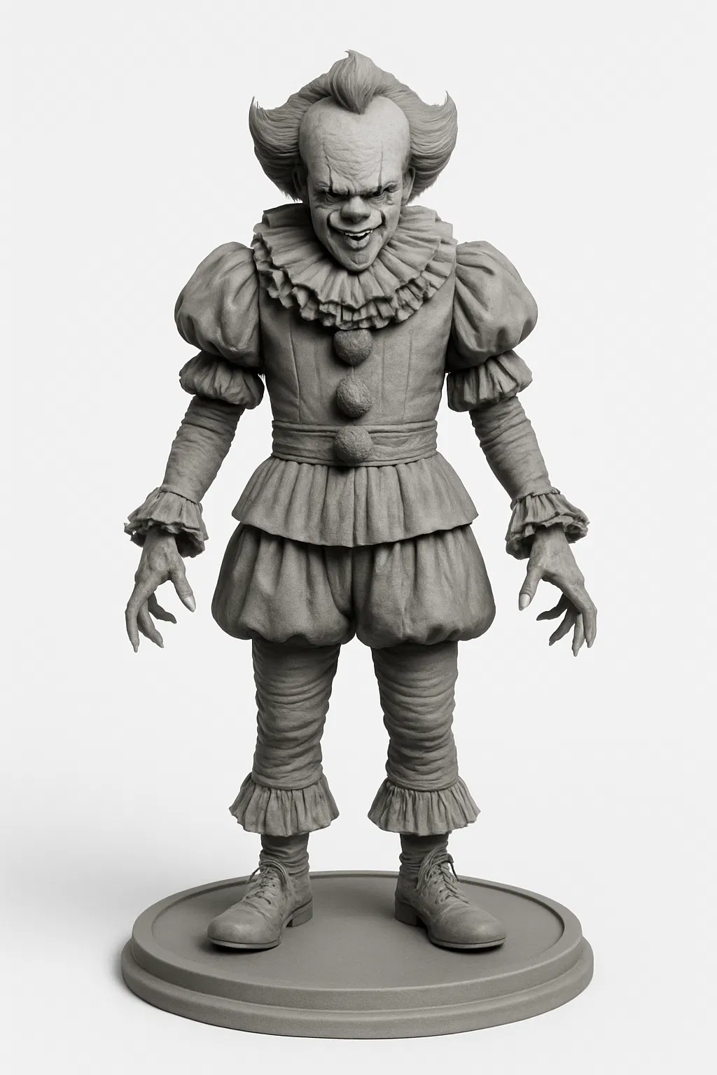 Mô hình Pennywise, một nhân vật kinh điển trong các dịp Halloween. Thích hợp để trang trí, mang đến không khí rùng rợn và độc đáo cho không gian của bạn. Tải về và in ngay để sở hữu một chú hề ma quái này nhé!