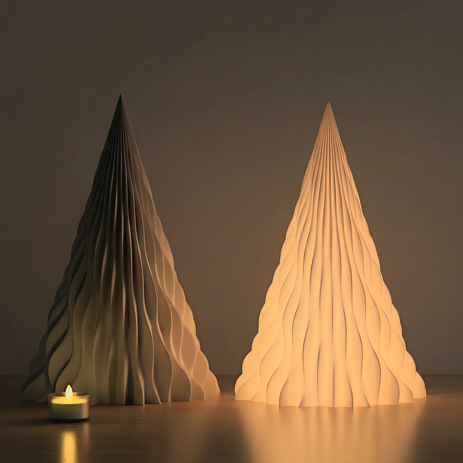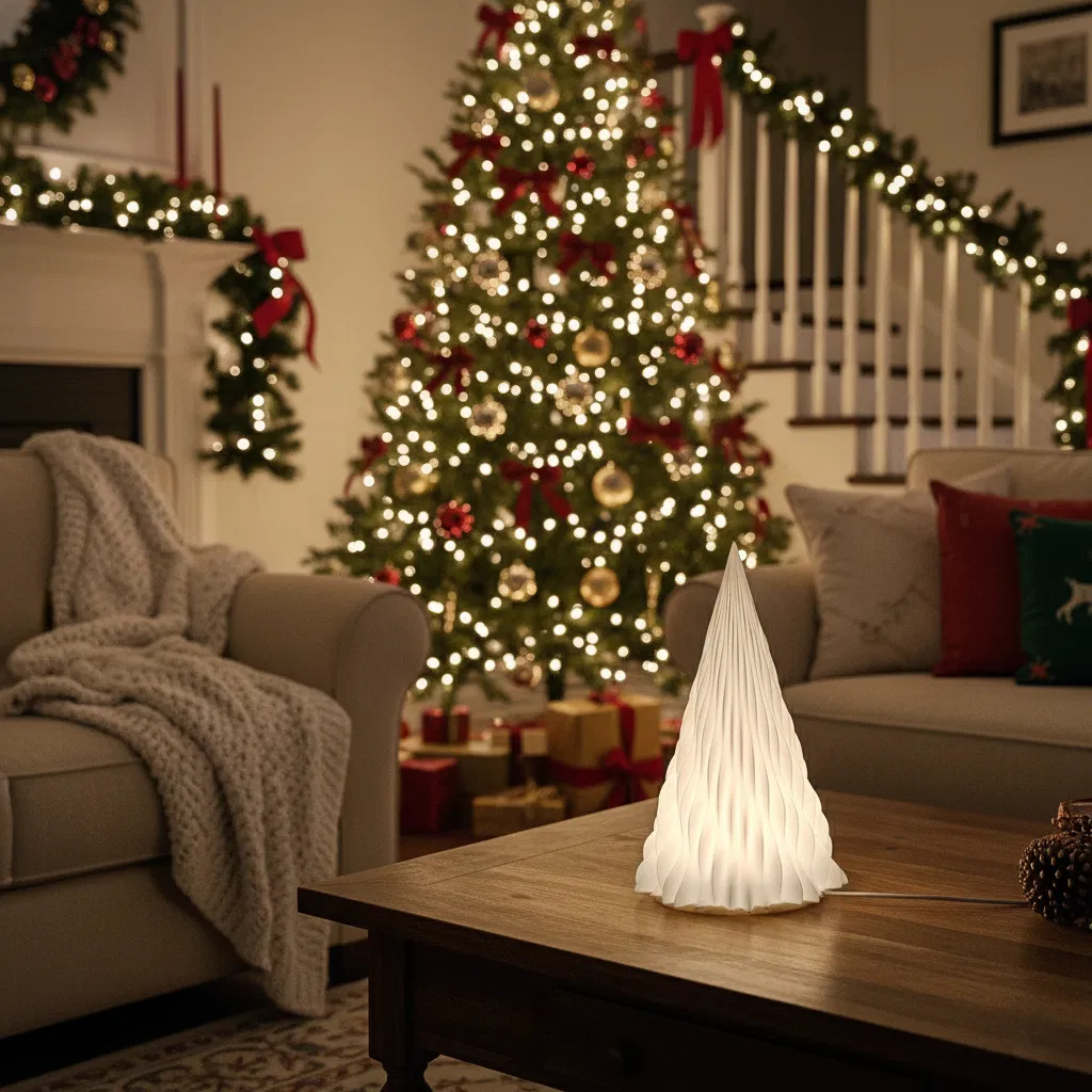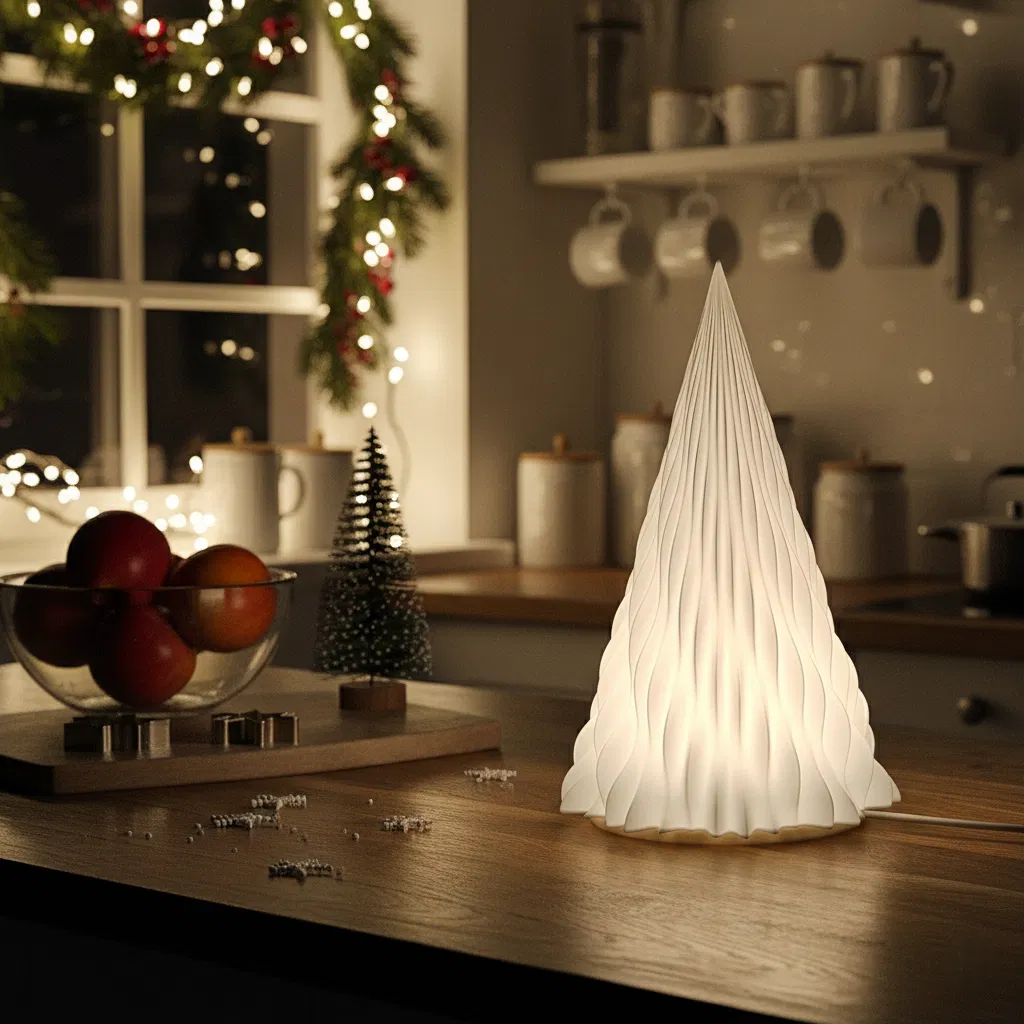 Trang Trí Độc Lập (In Chế Độ Lọ hoặc Chế Độ Thường): In cây đèn này bằng sợi filament yêu thích của bạn (như màu trắng cổ điển, xanh lá cây, hoặc thậm chí là sợi lụa) và sử dụng trực tiếp như một tác phẩm điêu khắc trang trí ngày lễ tối giản, sành điệu. Nó trông tuyệt vời khi in ở nhiều kích cỡ khác nhau để tạo thành một "khu rừng" nhỏ. Để có đồ trang trí nhẹ nhàng, thanh tao hơn, hãy in ở Chế Độ Lọ. Nếu bạn cần độ bền cao hơn hoặc cảm giác chắc chắn, một bản in chế độ thường (có vật liệu độn) cũng là một lựa chọn tuyệt vời.