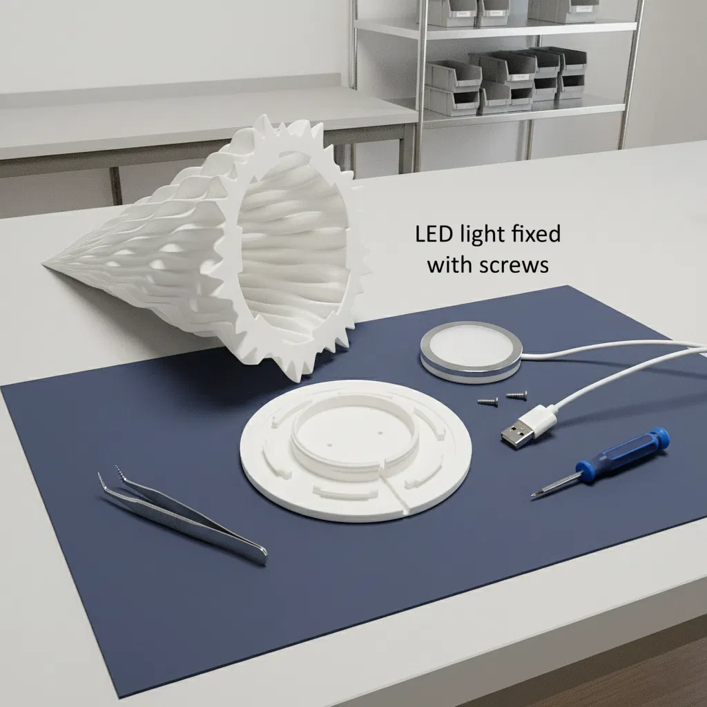 - Tùy chọn 1 (Dễ nhất - Khuyến nghị): Sử dụng "Vòng Vặn Đèn LED" đã in. Đặt chip LED vào đế và cố định bằng cách xoay vòng vặn vào vị trí.