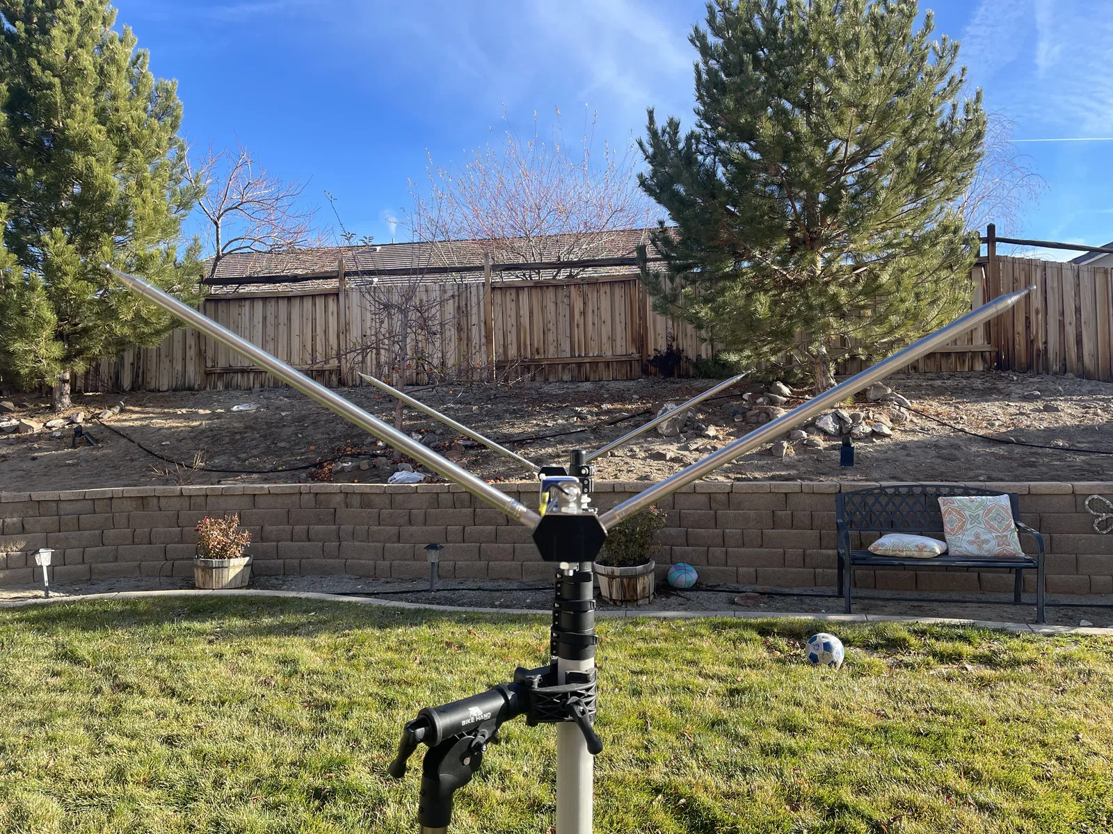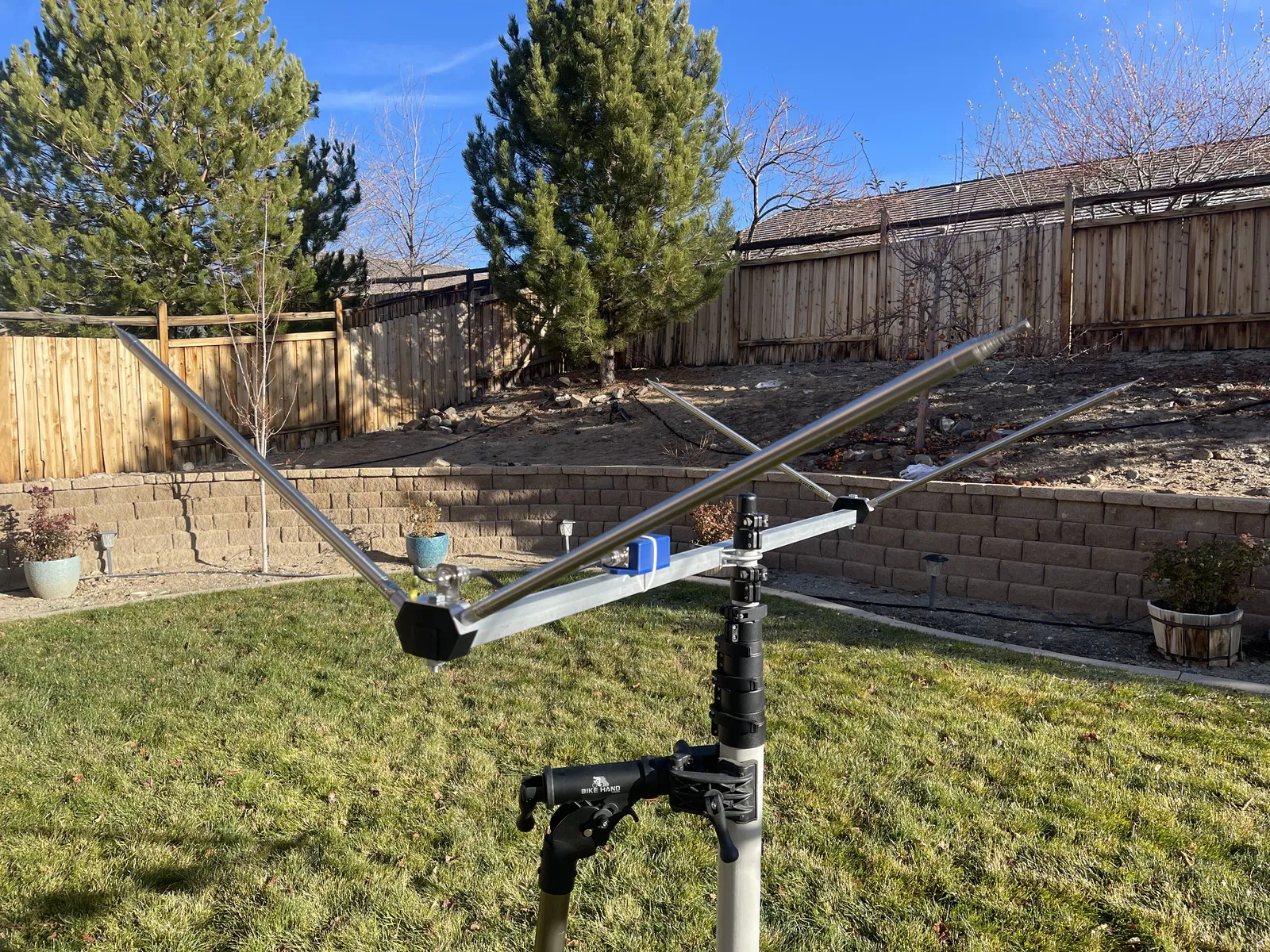Tôi đã dùng một cột anten dạng ống lồng 25' để gắn anten. Dùng bất cứ thứ gì có tác dụng. Càng cao càng tốt, tuy nhiên hiệu suất vẫn khá tốt khi ở thấp.