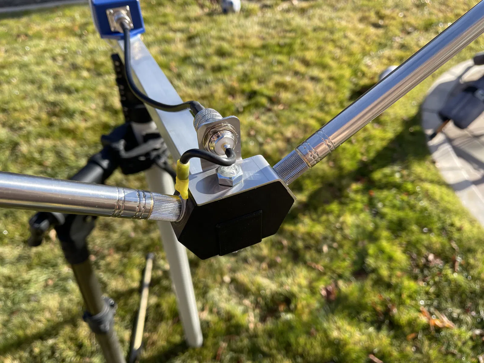 Đối với phần tử driven, kết nối dây nối đất của đầu nối SO239 với một cần anten và bu lông của hub. Kết nối dây trung tâm với cần anten còn lại.