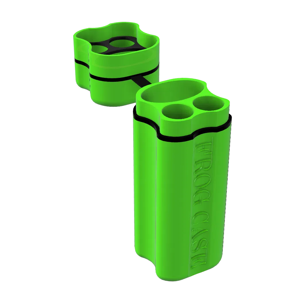 Cái Frog Case này là hộp đựng bật lửa và thuốc chống nước, được thiết kế độc đáo với phần bên trong trông giống mặt ếch khi mở ra. Bản V1.6 đã cải tiến để gioăng khít hơn, không cần keo dán.