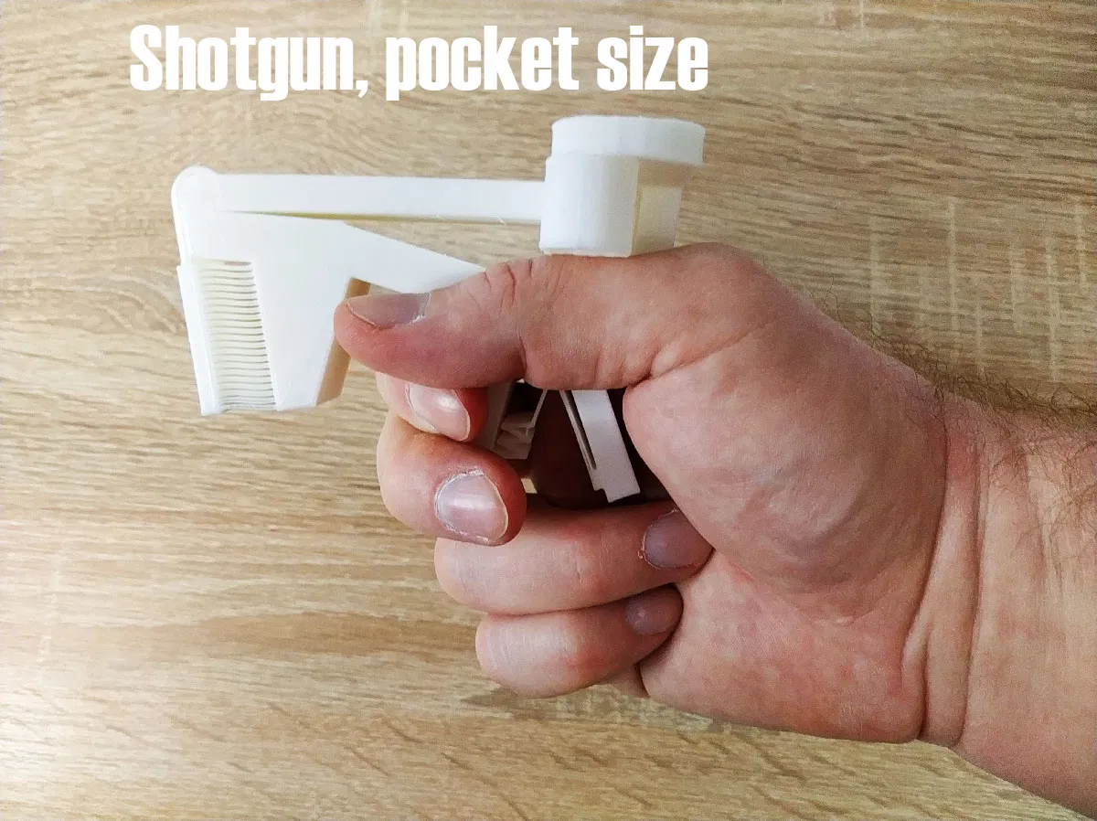 Mô hình súng bắn ping pong và pháo giấy Giáng Sinh, sử dụng cơ chế lò xo đòn bẩy mạnh mẽ. Khuyến mãi Black Friday cho bộ sưu tập "Amazing STL Creator" trên Patreon.