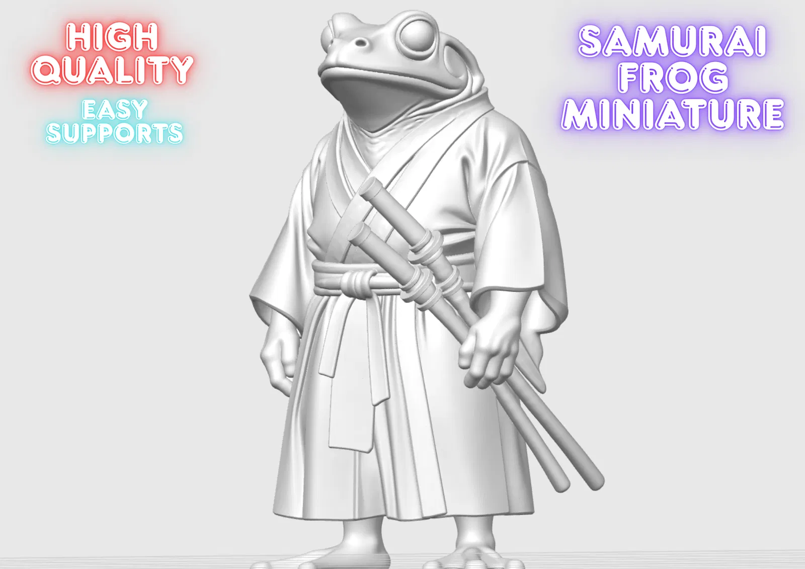 Mô hình ếch samurai tí hon với chi tiết cao, dễ dàng loại bỏ support. Hãy chú ý hơn đến phần chân khi in để có kết quả tốt nhất. Thích hợp cho các bộ sưu tập để bàn hoặc các trò chơi nhập vai Dungeons & Dragons.